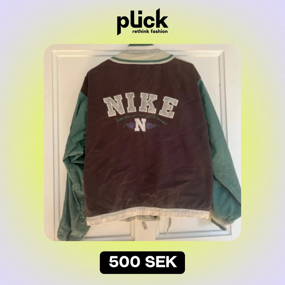 Vintage Nike Baseballjacka i svart/grön/beige i storlek S. Säljer för att den inte kommer till användning. Finns små fläckar på framsidan, se bild🩷