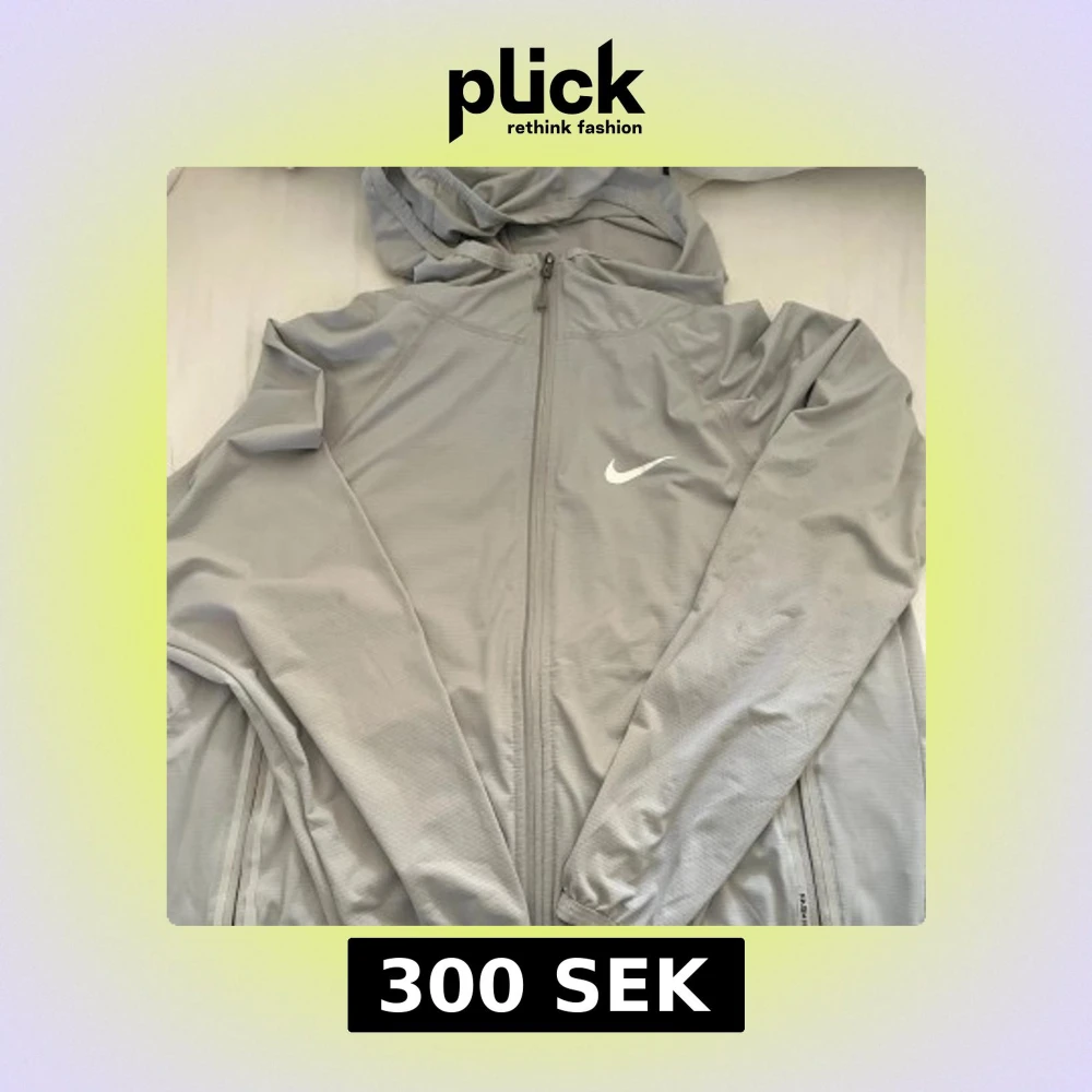 Perfket för nån som är över 165 till 173Snygg grå vindjacka från Nike med huva och hel dragkedja framtill. Jackan har diskret struktur i tyget, två fickor med dragkedja och klassisk Nike-logga på bröstet. Perfekt för dig som gillar sportig och clean stil.