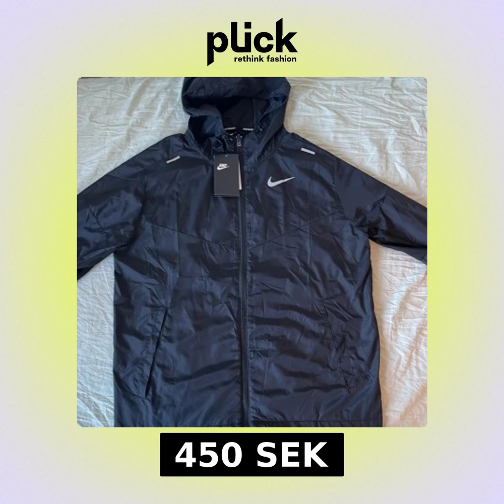 Svart vindjacka från Nike med huva och hel dragkedja framtill. Jackan har två sidofickor, meshfoder och reflekterande detaljer på axlarna. Nike-logga på bröstet och Dri-FIT-teknologi för extra komfort. Perfekt för löpning och aktiva dagar.