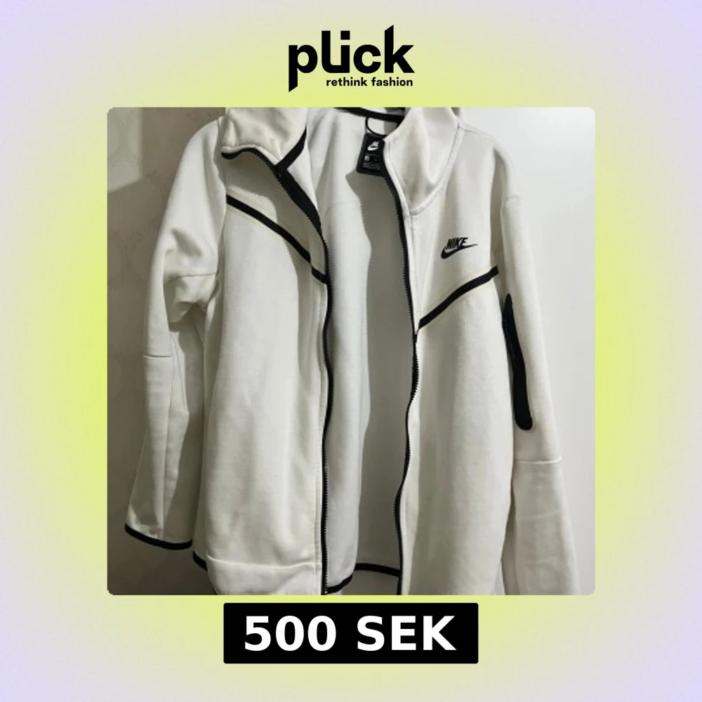 Snygg vit jacka från Nike i storlek S med svarta kontrastdetaljer och dragkedja framtill. Jackan har lång ärm och en cool ficka med dragkedja på ena ärmen. Perfekt för dig som gillar sportig och clean stil.