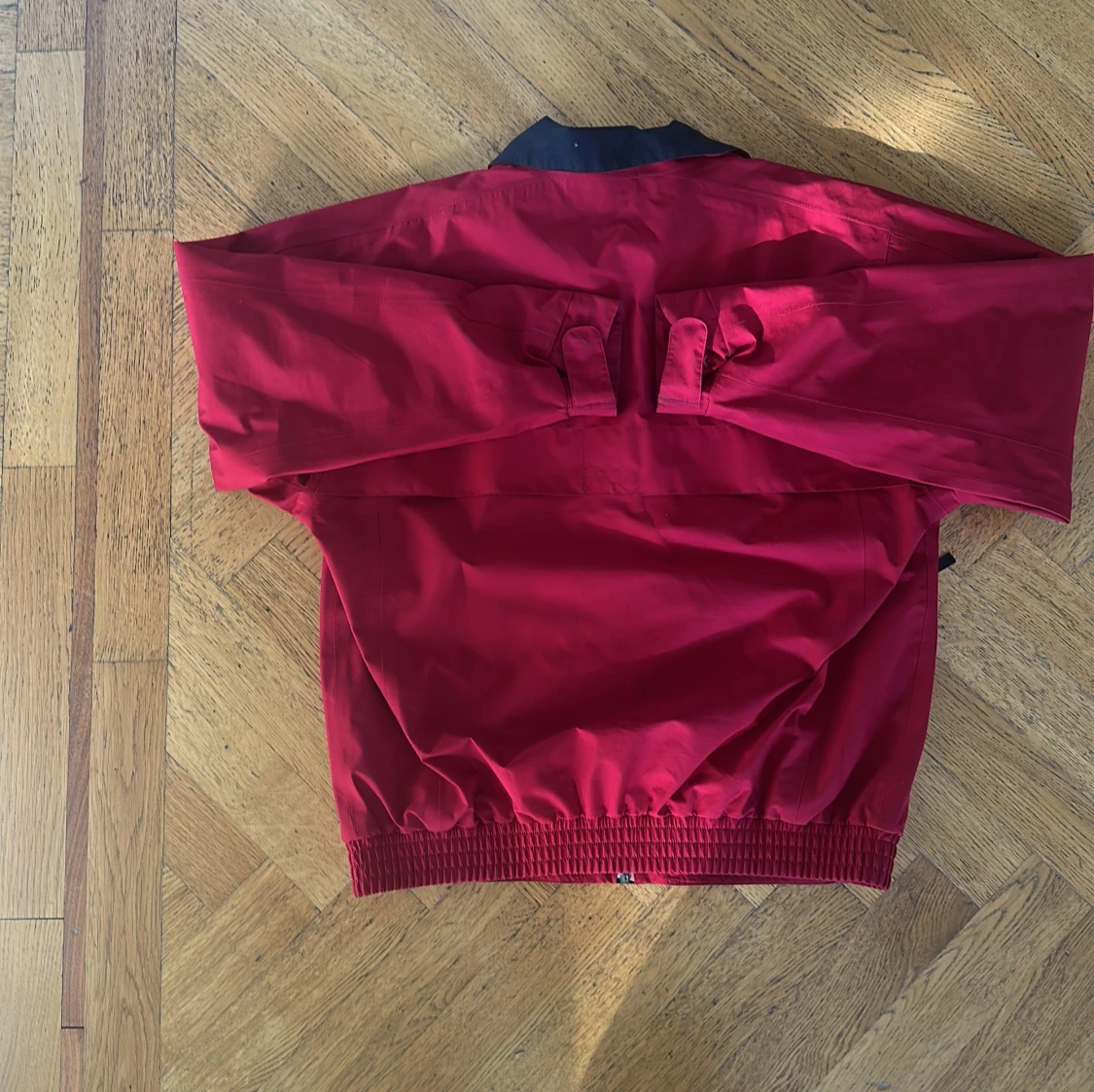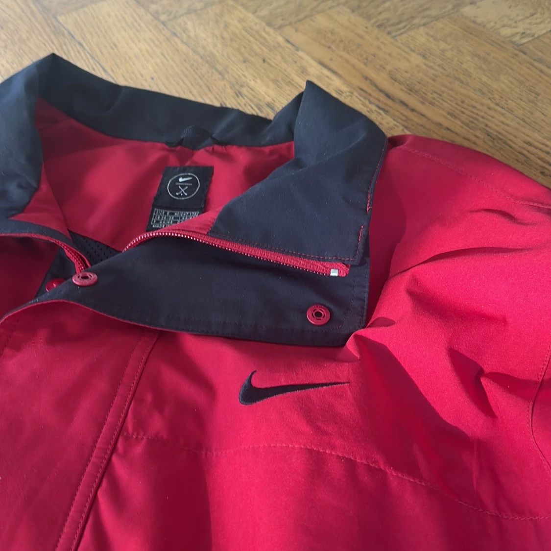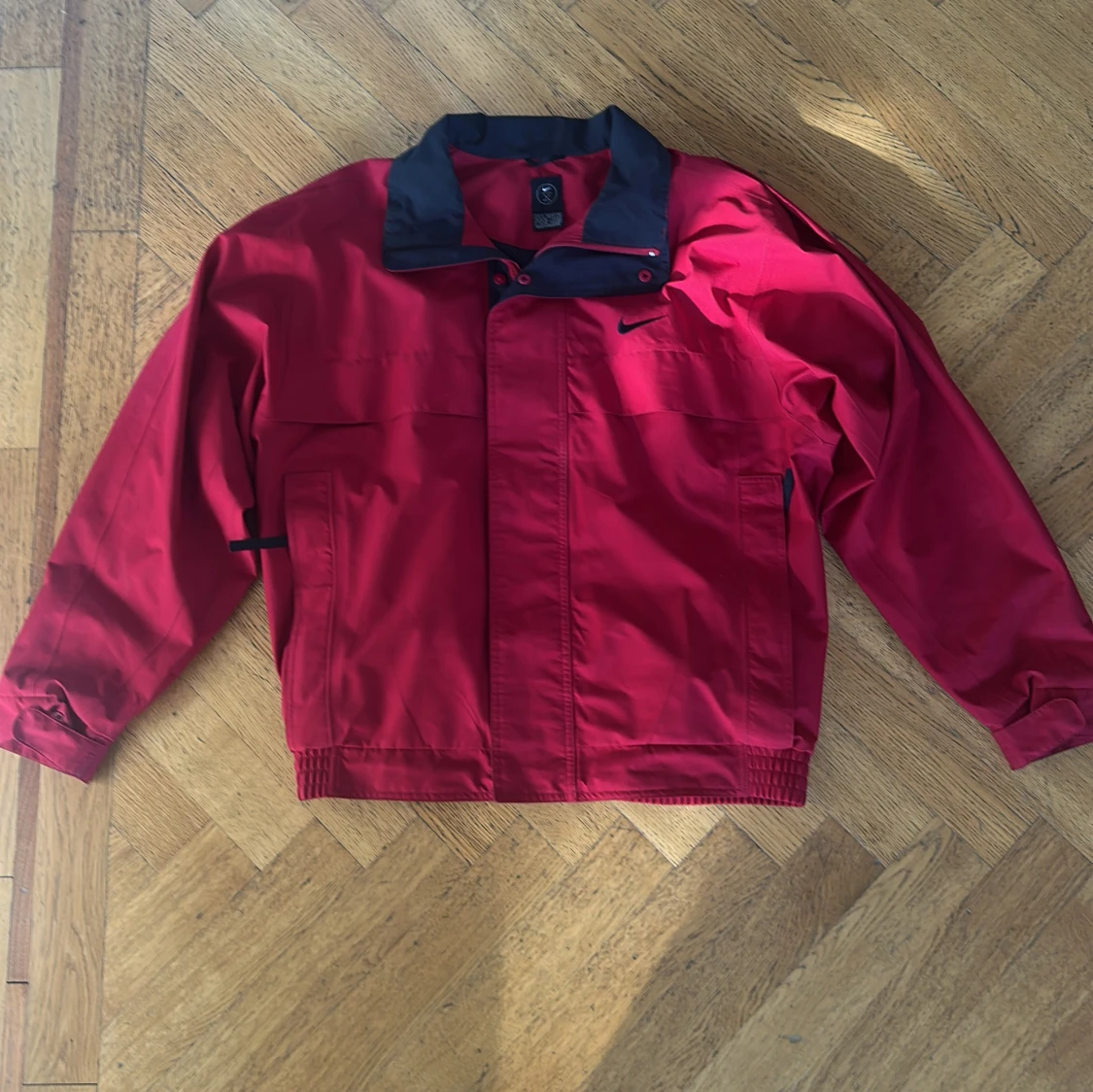 Riktigt snygg röd vindjacka från Nike med svart krage och diskret svart swoosh-logga på bröstet. Jackan har dragkedja och tryckknappar framtill, elastisk midja och ärmslut samt praktiska fickor. Perfekt för dig som gillar sportig och clean stil.