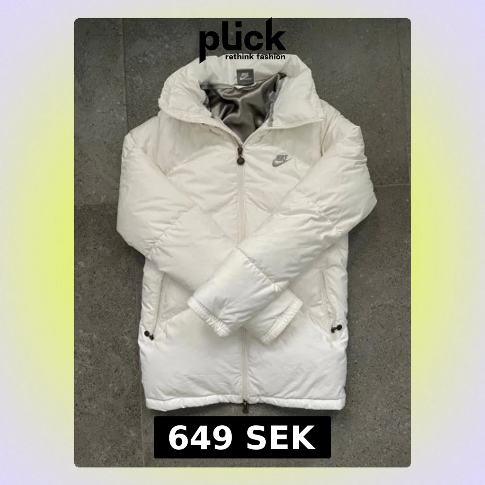Snygg vit pufferjacka från Nike Sportswear med broderad logga på bröstet och coolt metallmärke på dragkedjan. Jackan har hög krage, två sidofickor med dragkedja och ett silvrigt innerfoder. Perfekt för kalla dagar och riktigt stilren look. Storleken är S men jag skulle säga att den sitter lutar sig lite mer mot XS hållet. Nypris: 1200kr Pris går att diskutera☺️
