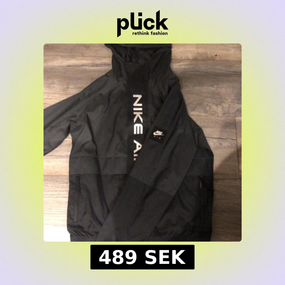 Svart vindjacka från Nike Air med stor vit logga framtill och patch på ärmen. Jackan har huva, långa ärmar och dragkedjor på fickorna. Perfekt för dig som gillar sportig stil och vill ha något som funkar när det blåser och vattentät