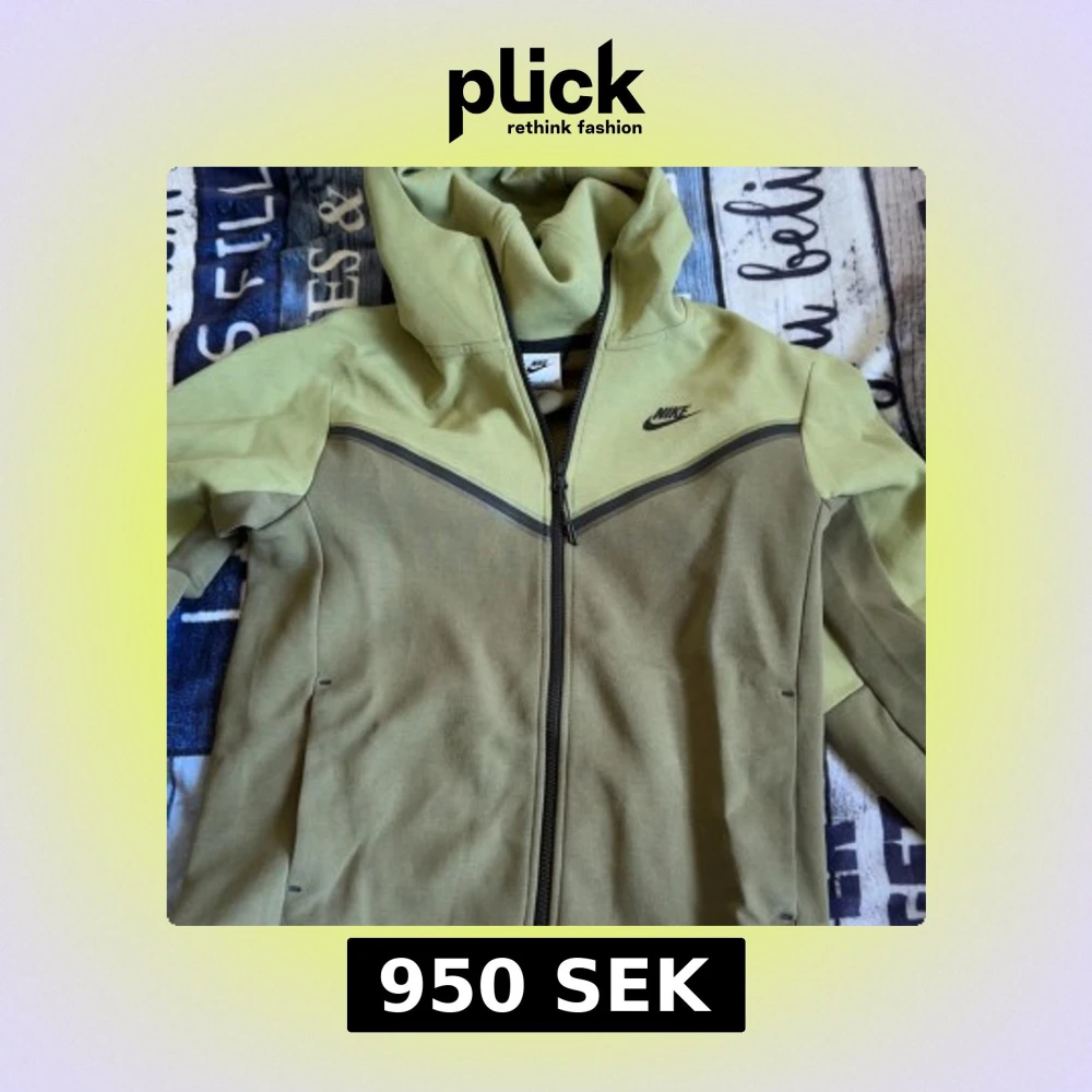 Nike hoodie jacka i olivgrönt med dragkedja och huva. Snygg tvåtonad design med mörkare och ljusare partier, samt svart Nike-logga på bröstet. Jackan har långa ärmar och är tillverkad i mjukt bomullsmaterial, perfekt för chill eller träning. kan säljas endast byxor eller jackan. priset ej hugget i sten vid snabbaffär