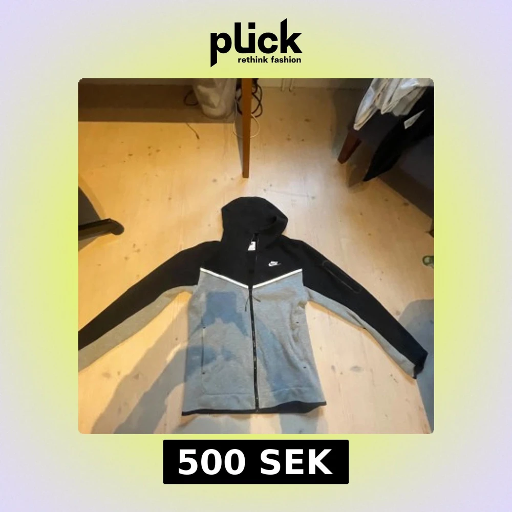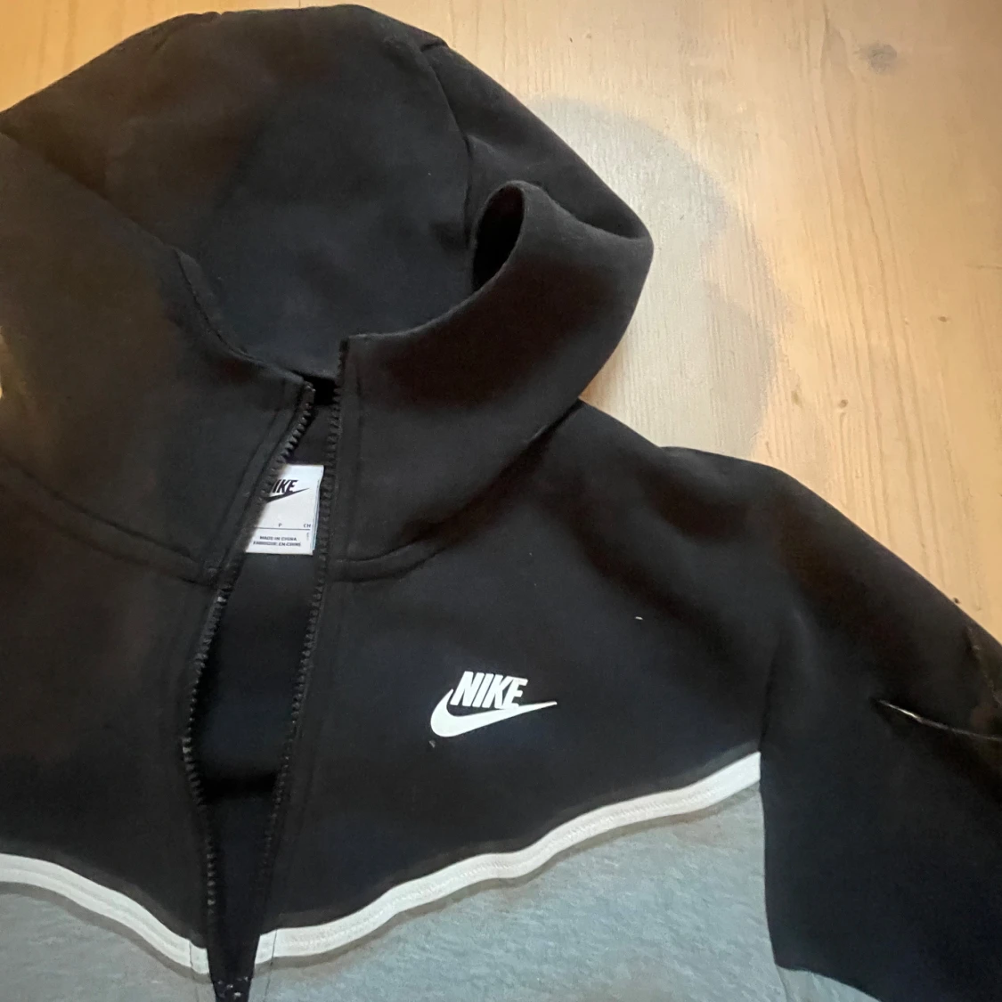 Nike hoodiejacka i svart och grått med vit detalj över bröstet. Jackan har dragkedja, huva med snörning och två fickor framtill. Perfekt för chill eller träning, med klassisk Nike-logga på bröstet. Mjuk och bekväm i bomullsmix.