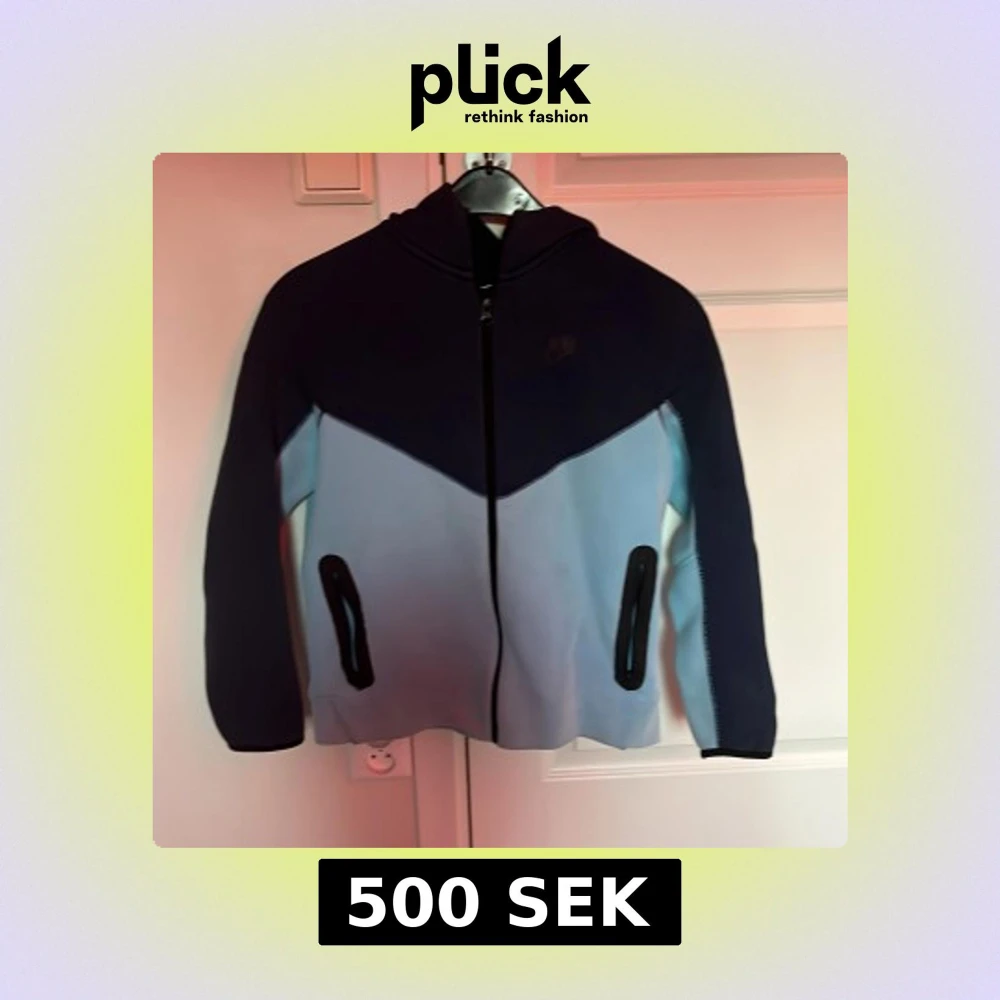 Nike vindjacka i två nyanser av blått med svart dragkedja och huva. Jackan har svarta detaljer vid fickorna och en snygg V-formad färgövergång framtill. Perfekt för dig som gillar sportig stil och vill ha något bekvämt och stilrent.