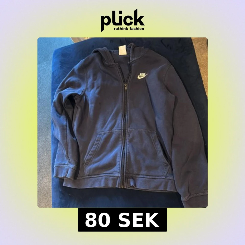 Mörkblå hoodiejacka från Nike i storlek XL, med dragkedja framtill och två stora fickor. Klassisk Nike-logga på bröstet och mjukt material som känns skönt mot huden. Perfekt för chill dagar eller när du vill ha en sportig look.