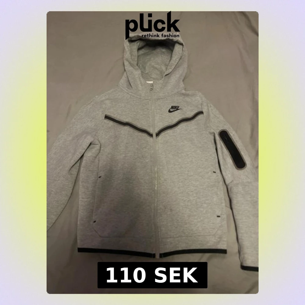 Grå hoodie från Nike med hel dragkedja, svart Nike-logga på bröstet och svarta detaljer längs bröstet och ärmslut.