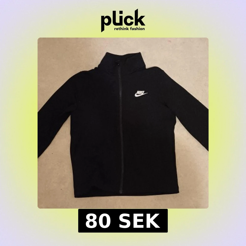 Svart jacka från Nike med hel dragkedja och hög krage. Stor Nike-logga på ryggen och mindre logga på bröstet. Jackan har lång ärm och är tillverkad i ett mjukt syntetmaterial. Perfekt för träning eller som en sportig vardagsjacka.