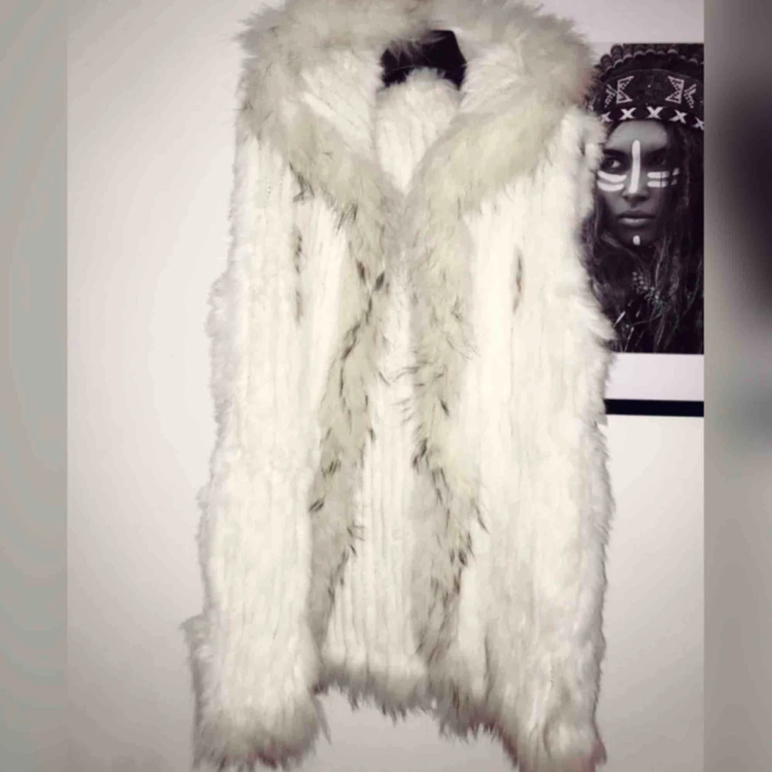 Pälsväst med luva, kaninpäls. Inklusive frakt!