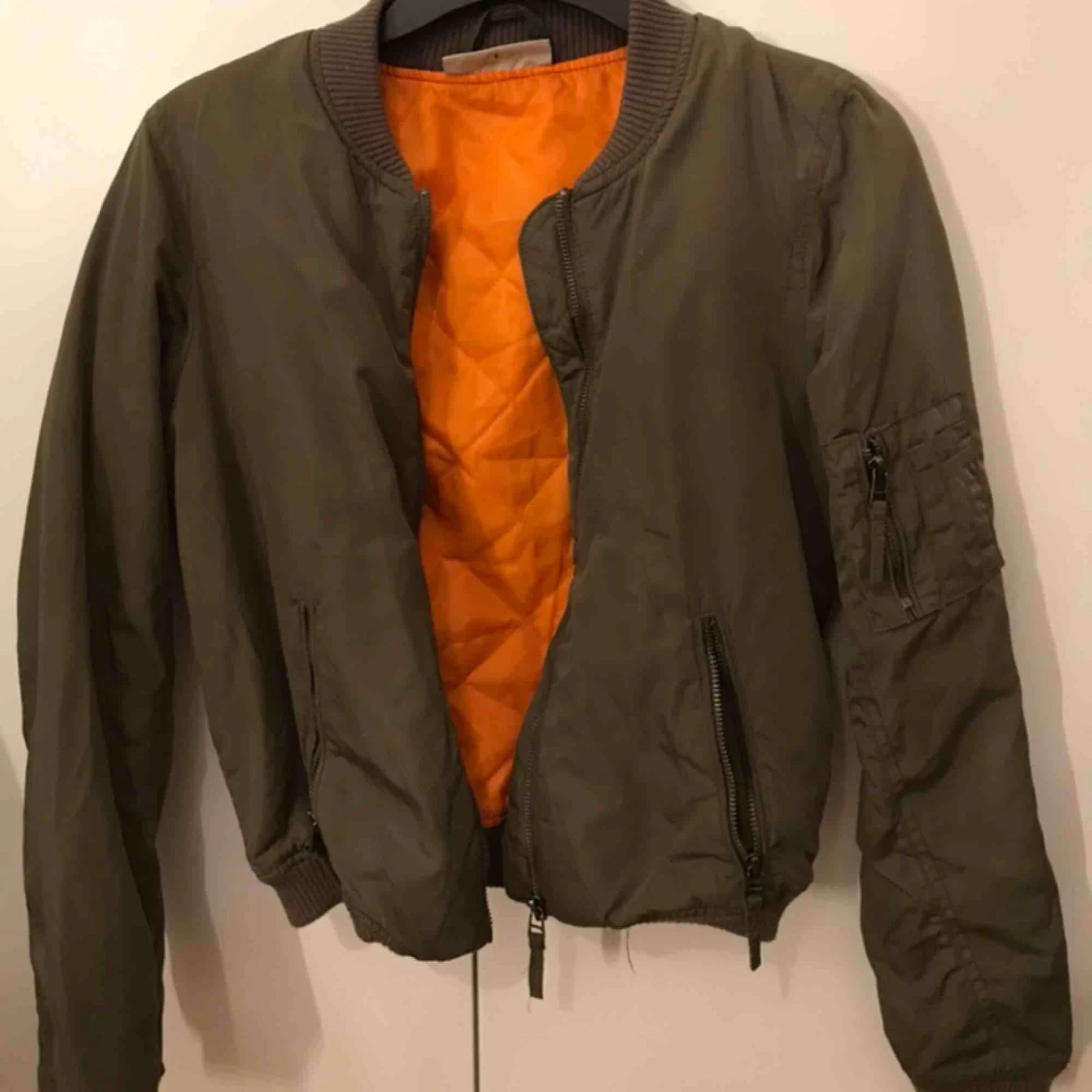 Säljer en grön bomberjacka från Noisy May. Köptes för ungefär ett år sedan. Den har bra skick. Dragkedjeförsedda fickor. Muddar i ärmslut samt nederkant.