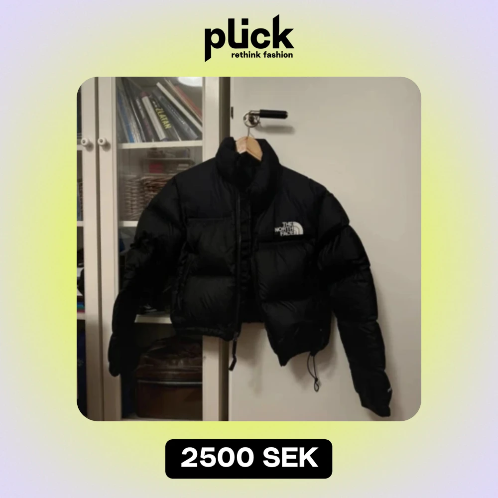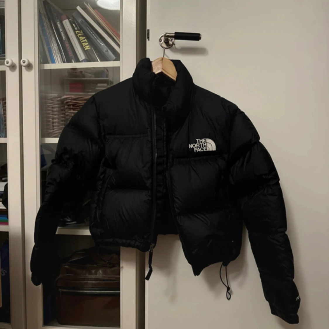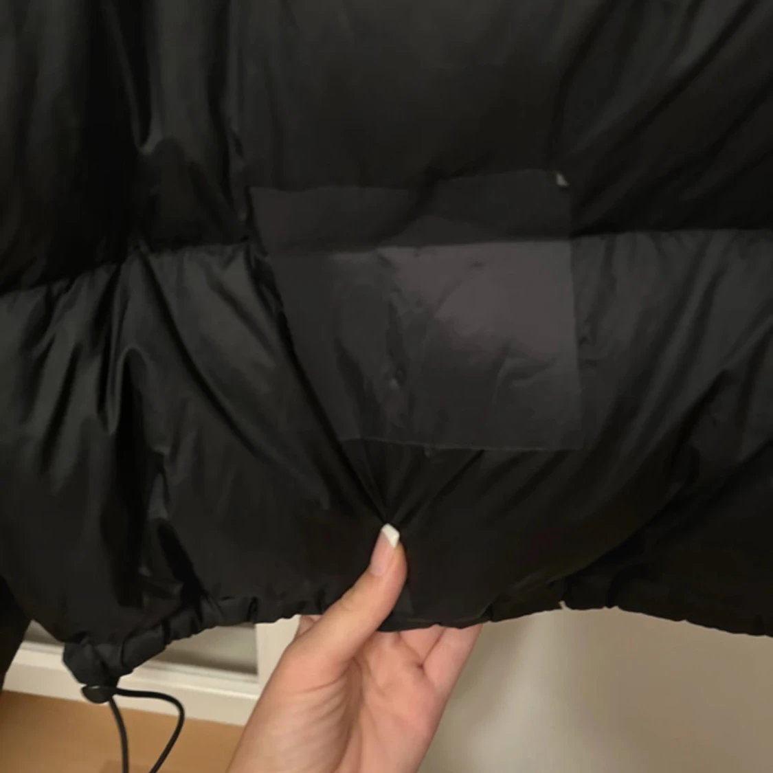 style women’s nuptse short jacket in black, har ett hål i ryggen som har lagats med en svart lapp. använd få gånger i storlek M. perfekt t vintern