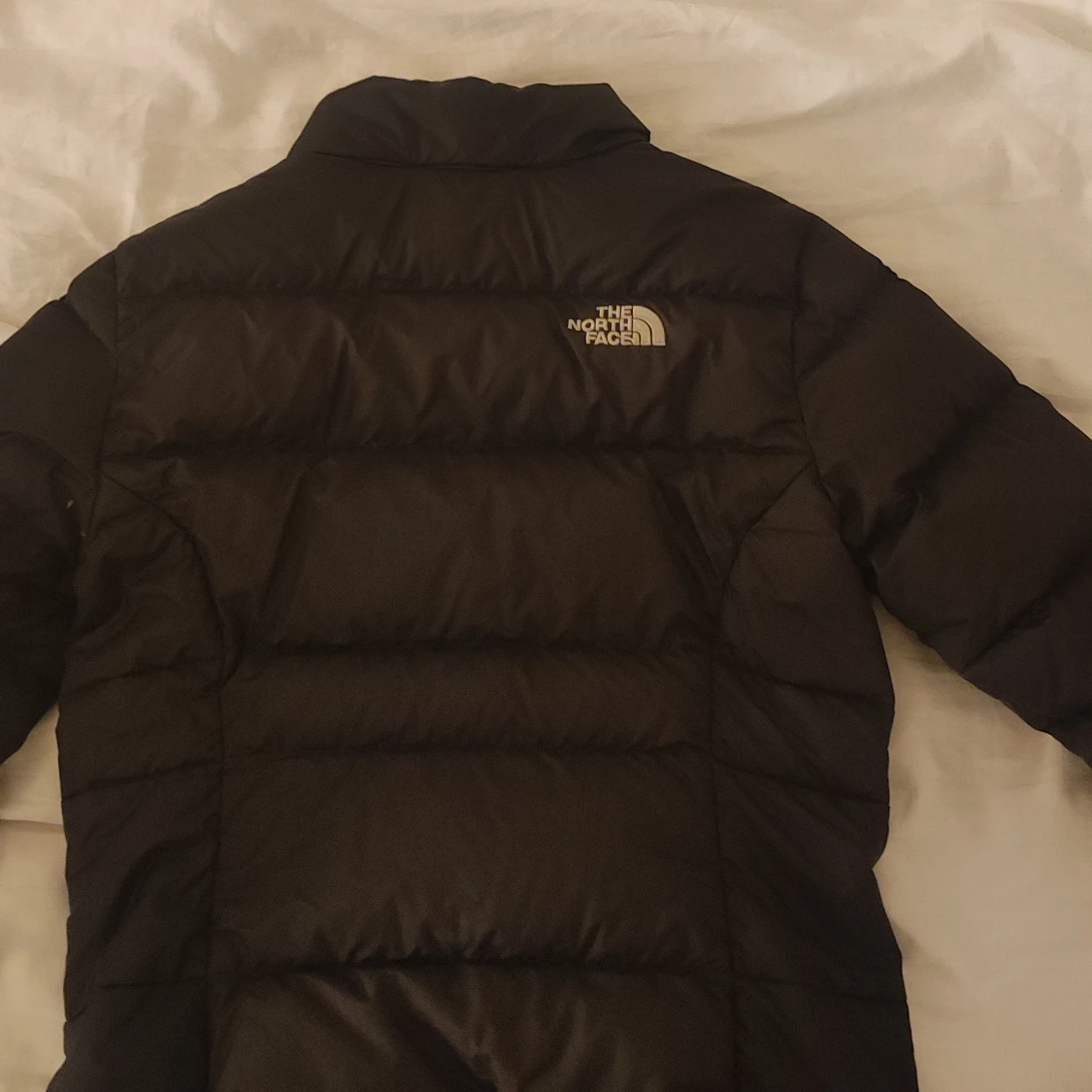 Svart( färgen ser lite konstig ut på bilderna men är svart) nortfacejacka i strl M barn, skulle säga att den sitter som en 150🤍en blå lagningslapp på framsidan men går enkelt att byta till en svart🤍