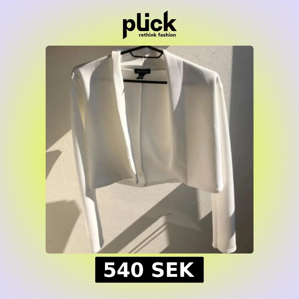 Elegant vit kavaj med en kortare modell och öppen front. Aldrig använd endast testad.