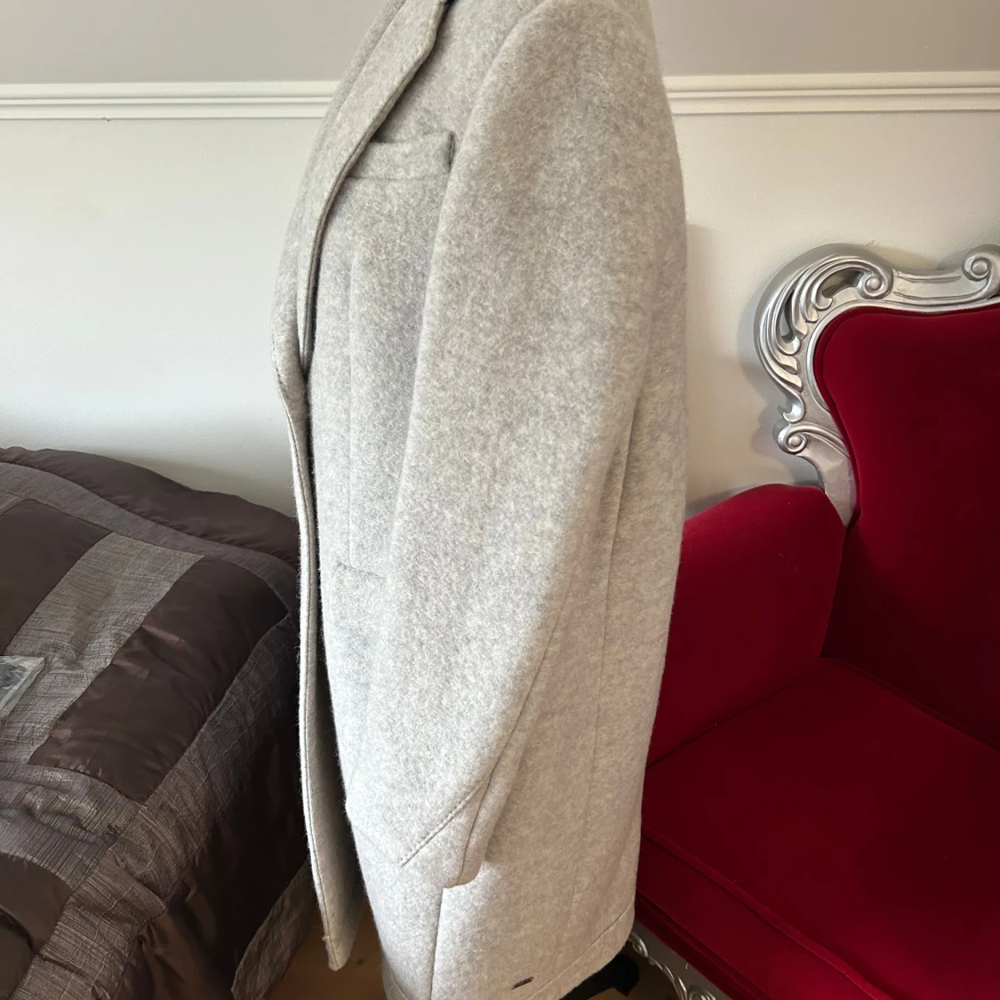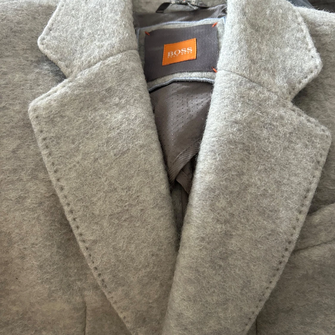 Mycket exklusiv och NY kvalitets Hugo Boss kappa i ljusgrått säljes. Storlek 38. Passar även dig i strl S om du gillar lite oversize.