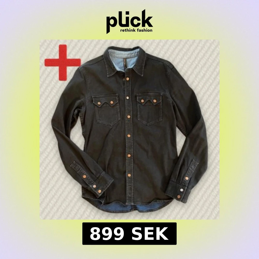 En riktigt fet och trendig svart jeansskjorta från Nudie Jeans! Storlek S, fint skick. Skriv om du har frågor! Mått: Längd - 68 cm, Axelbredd - 41 cm, Armlängd - 66 cm