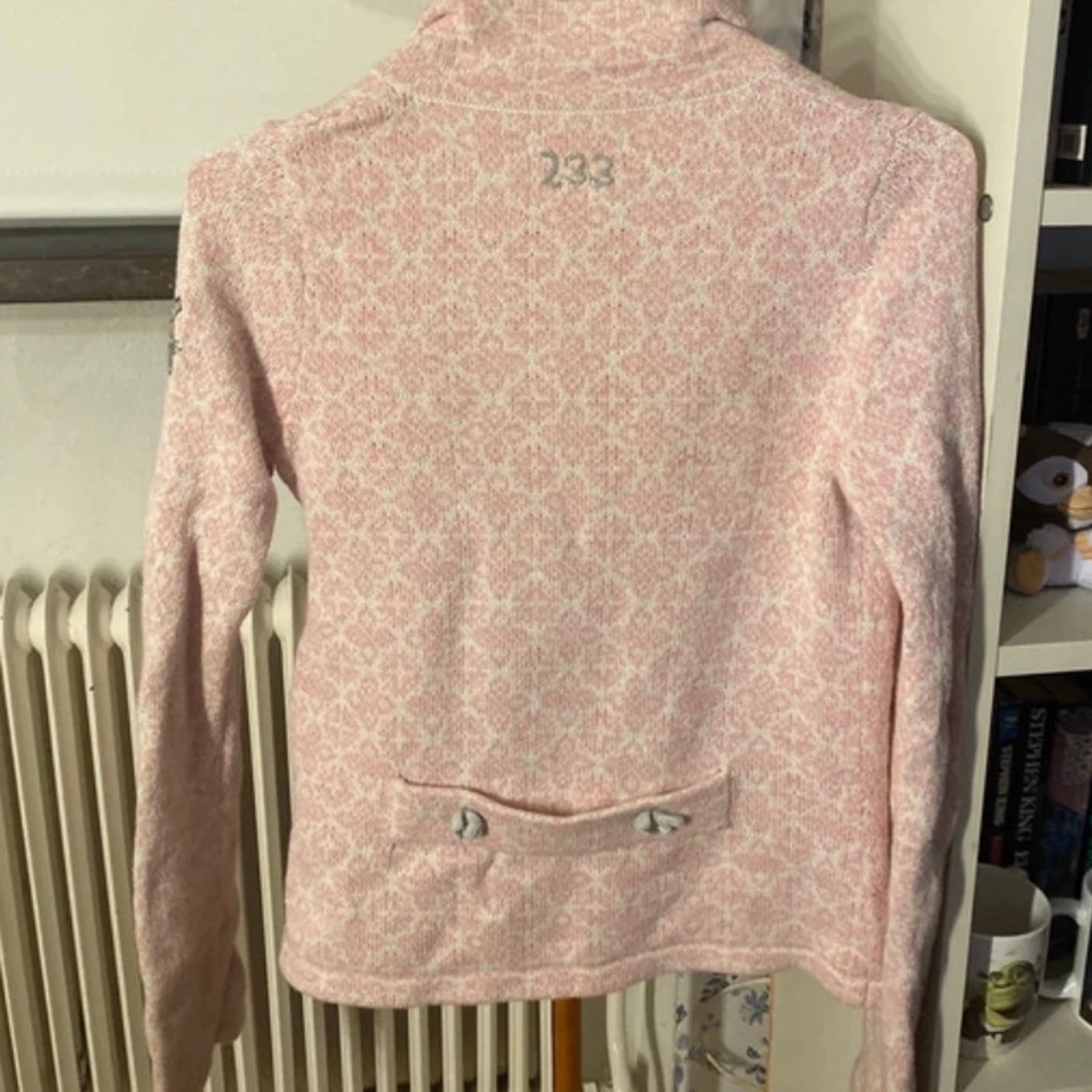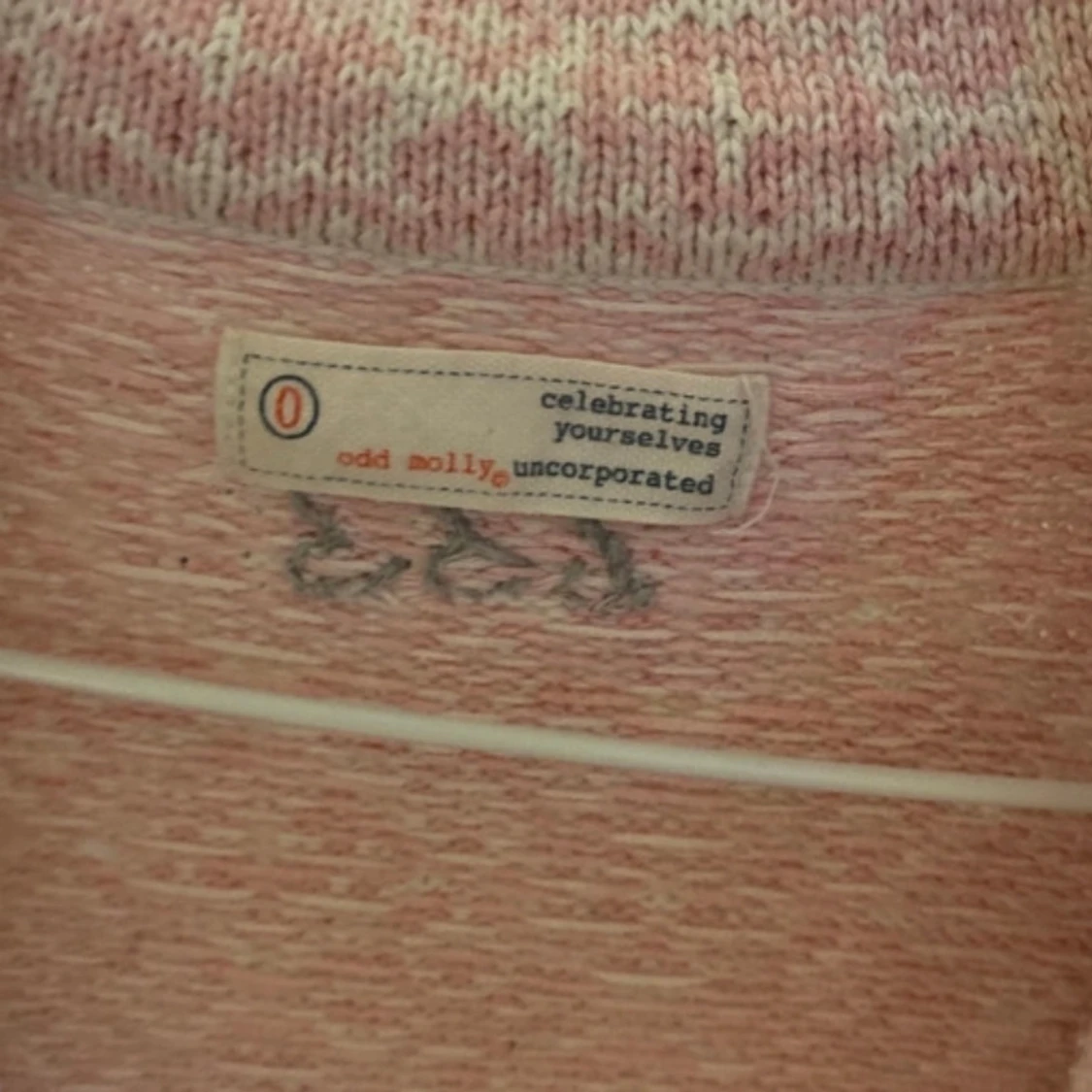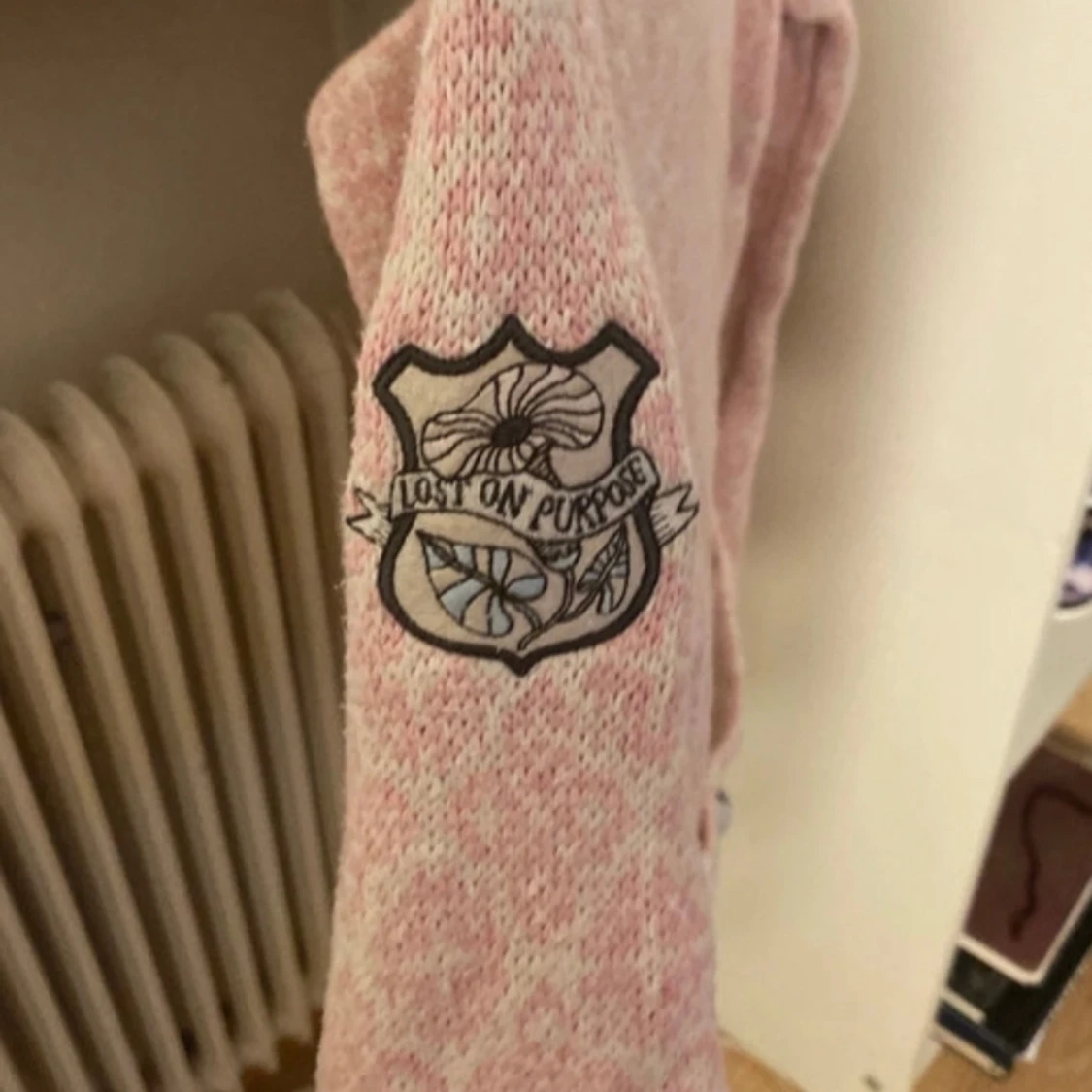 Superfin rosa och vit cardigan jacka från Odd Molly med diskret mönster, lång ärm och snygg knytning framtill. Broderad detalj på ärmen med texten 'Lost on Purpose' och dekorativa fickor. Perfekt för dig som gillar en söt och avslappnad stil.