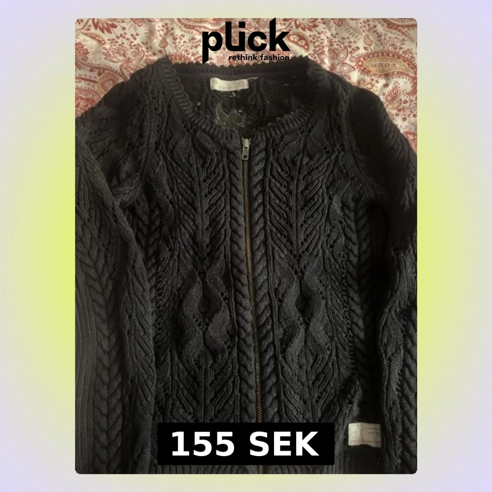 Svart stickad cardigan jacka från Odd Molly med grova flätstickade detaljer och dragkedja framtill. Jackan har långärmade ribbade muddar och ett märke med text på ärmen. Perfekt för dig som gillar snygga och mysiga lager. Passar s