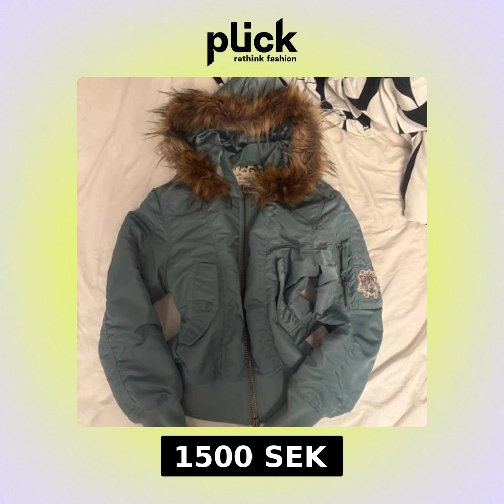 Snygg blå bomberjacka från Odd Molly med stor huva och brun fuskpäls. Jackan har dragkedja, ribbade muddar och coolt broderat märke på ärmen. Fodret är mönstrat och jackan har flera fickor. Perfekt för kalla dagar och riktigt trendig look.