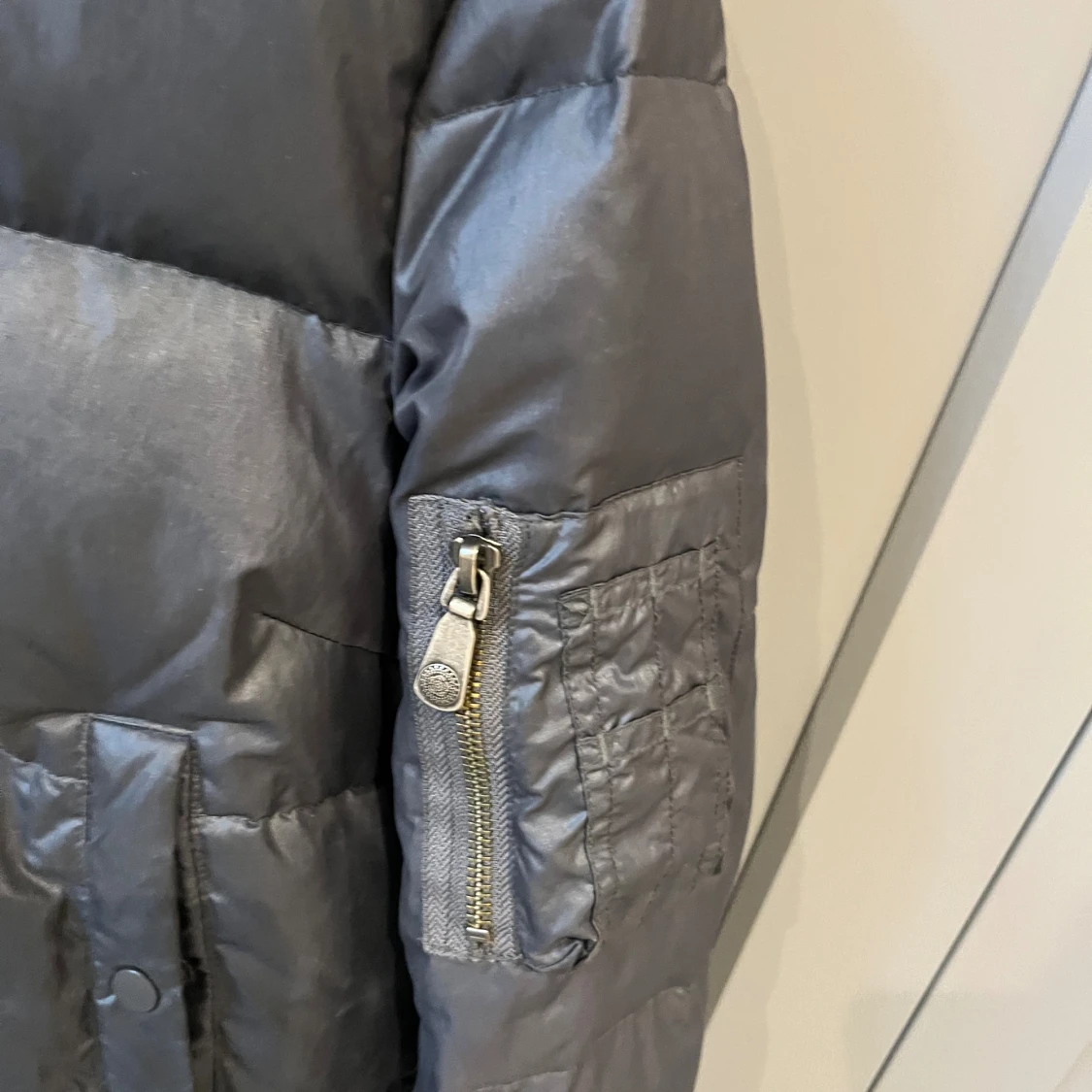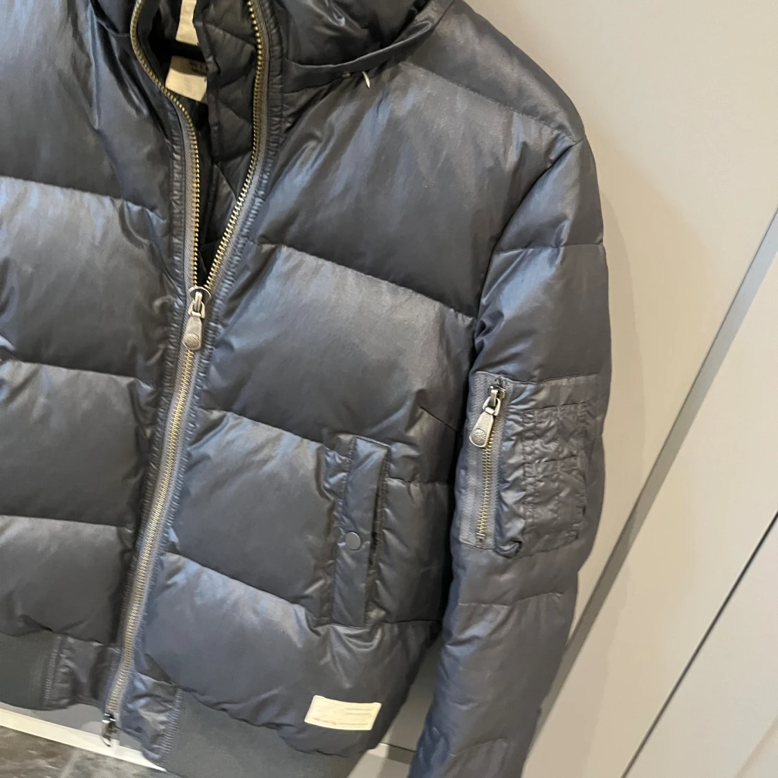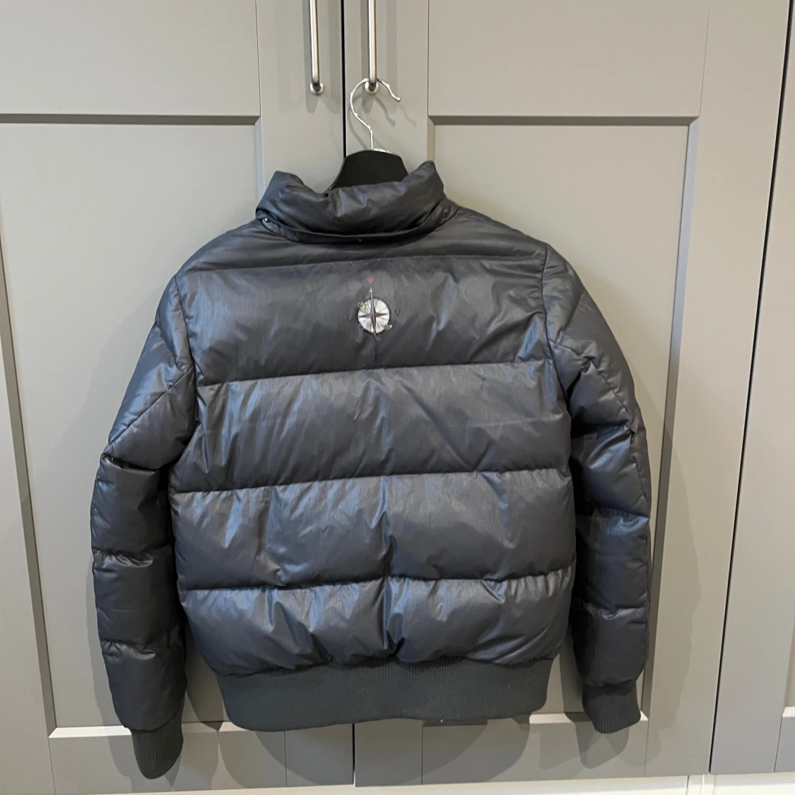 Säljer en mörkgrå pufferjacka från Stone Island med hög krage, breda quiltade paneler och dragkedja framtill. Jackan har ribbade muddar, fickor med lock och dragkedja på ärmen. Pris får att diskutera🥰lite osäker på storleken men tror s-m ❤️
