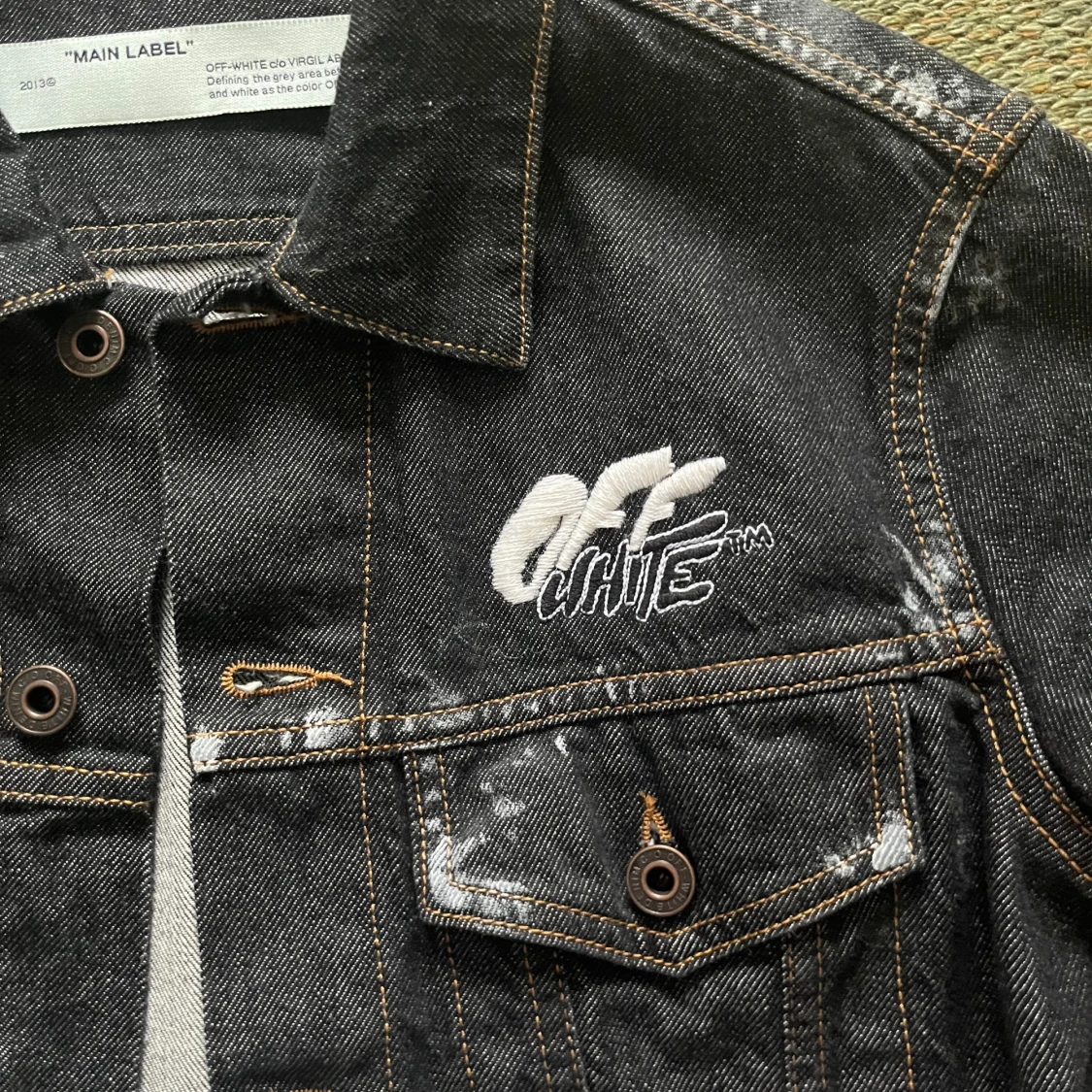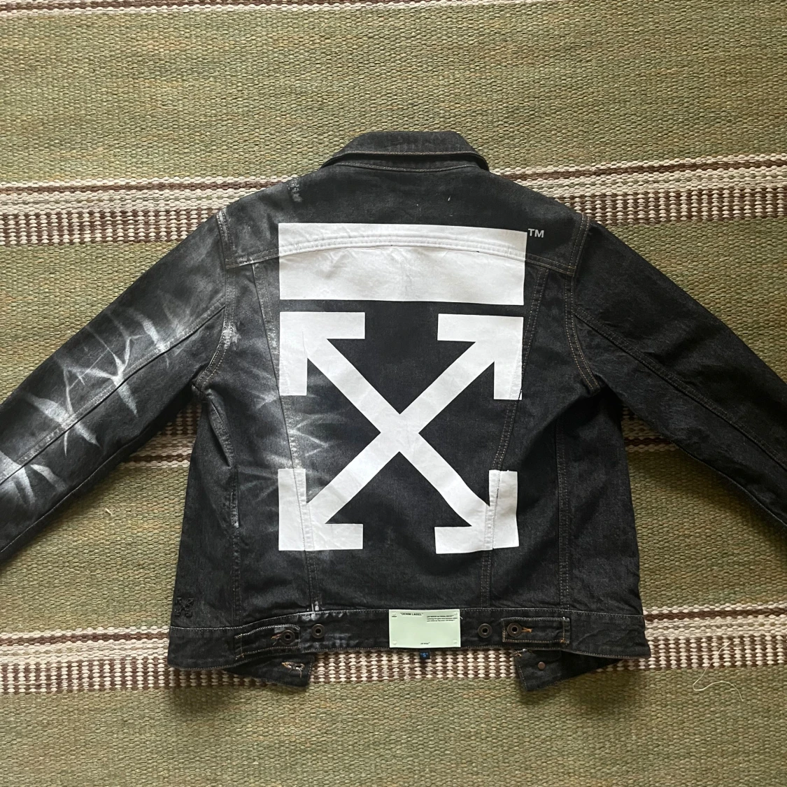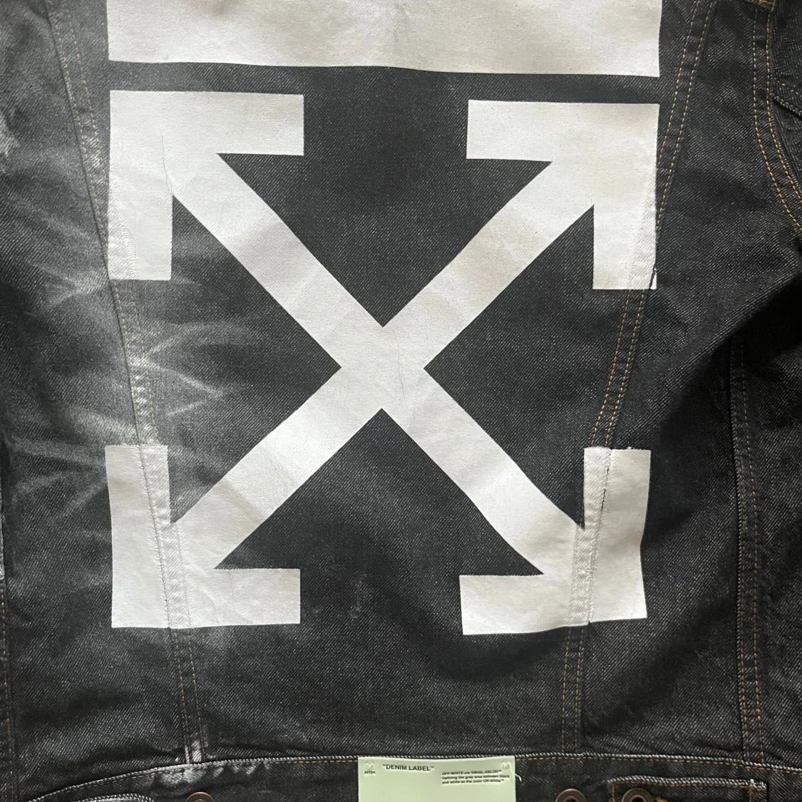 Hej, säljer min Off white jeansjacka i strl XS/S, köpt för ett antal år sedan men endast använd 8-10 gånger. Skick ligger mellan 8-9/10. Köpt på en italiensk hemsida (LUISAVIAROMA) går ej att få tag i längre. Nypris runt 6000 kr