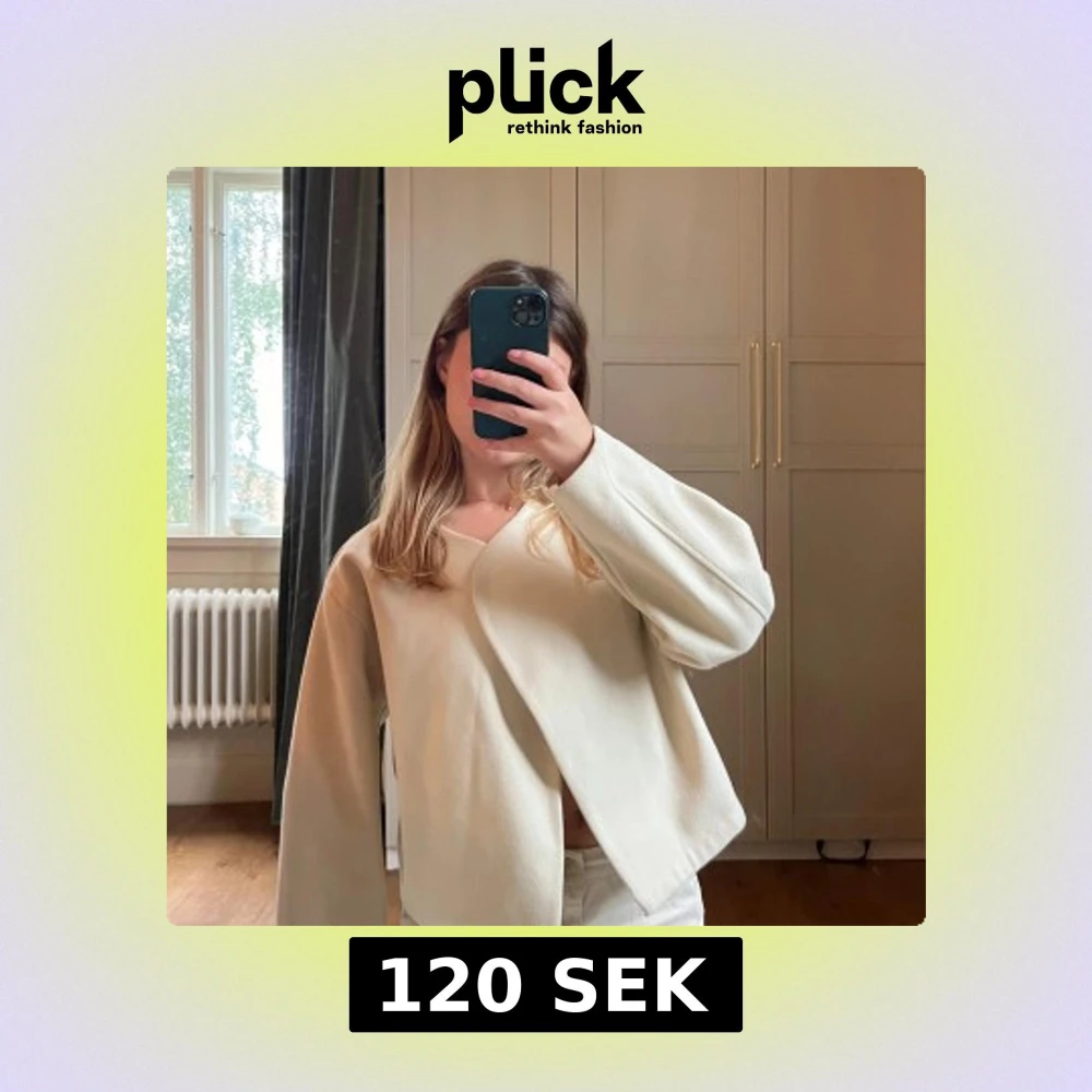 Säljer en superfin omlottkofta med långa ärmar och snyggt fall. Koftan/jackan har en stilren och modern look med lite boxig passform. Materialet känns mjukt och lite tjockare.