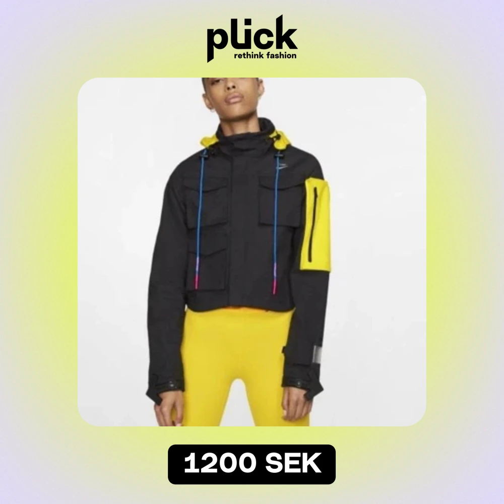 Nike x off white jacka i bomull. Svart med gula detaljer. Snygg som både träningsjacka och till vardags. Storlek xs men passar även s.