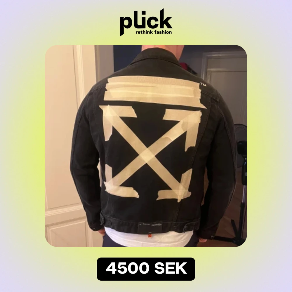 Svart jeans jacka från Off-White, storlek M, i princip oanvänd, köpt för 6700kr