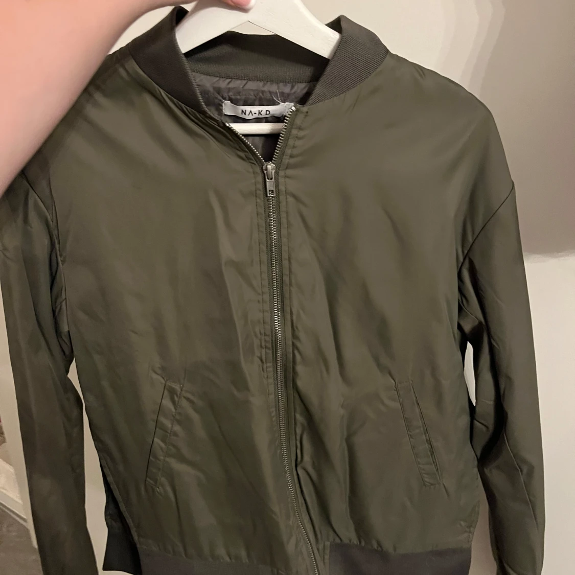 Snygg olivgrön bomberjacka från NA-KD med klassisk ribbad krage, muddar och dragkedja framtill. Jackan har två fickor och är tillverkad i ett slätt syntetmaterial som ger en clean look. Perfekt för dig som vill ha en stilren och enkel jacka.