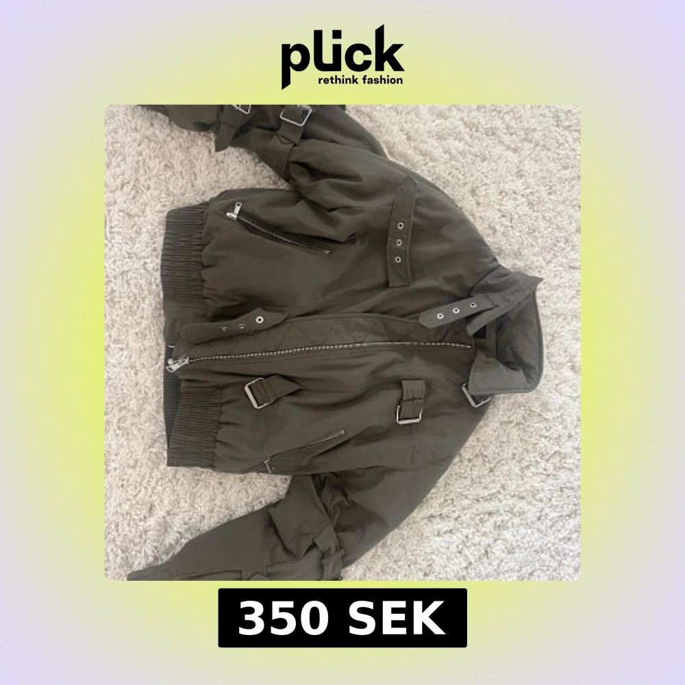 Säljer en olivgrön bomberjacka från Zara med spännen och detaljer på ärmarna. Den är i storlek S. Har aldrig använt den.