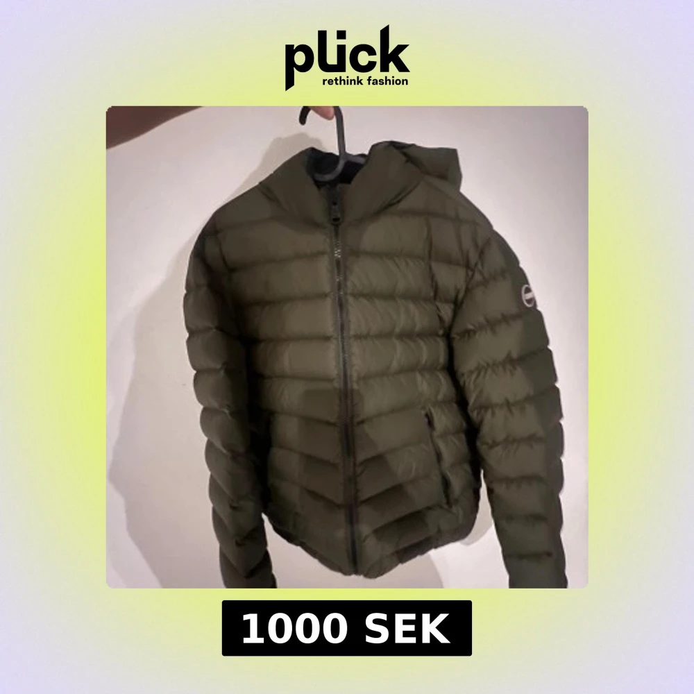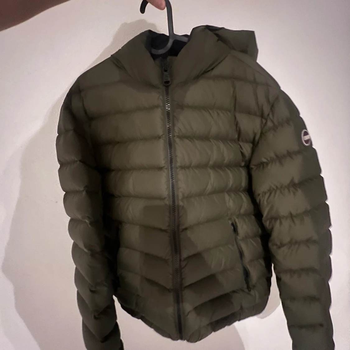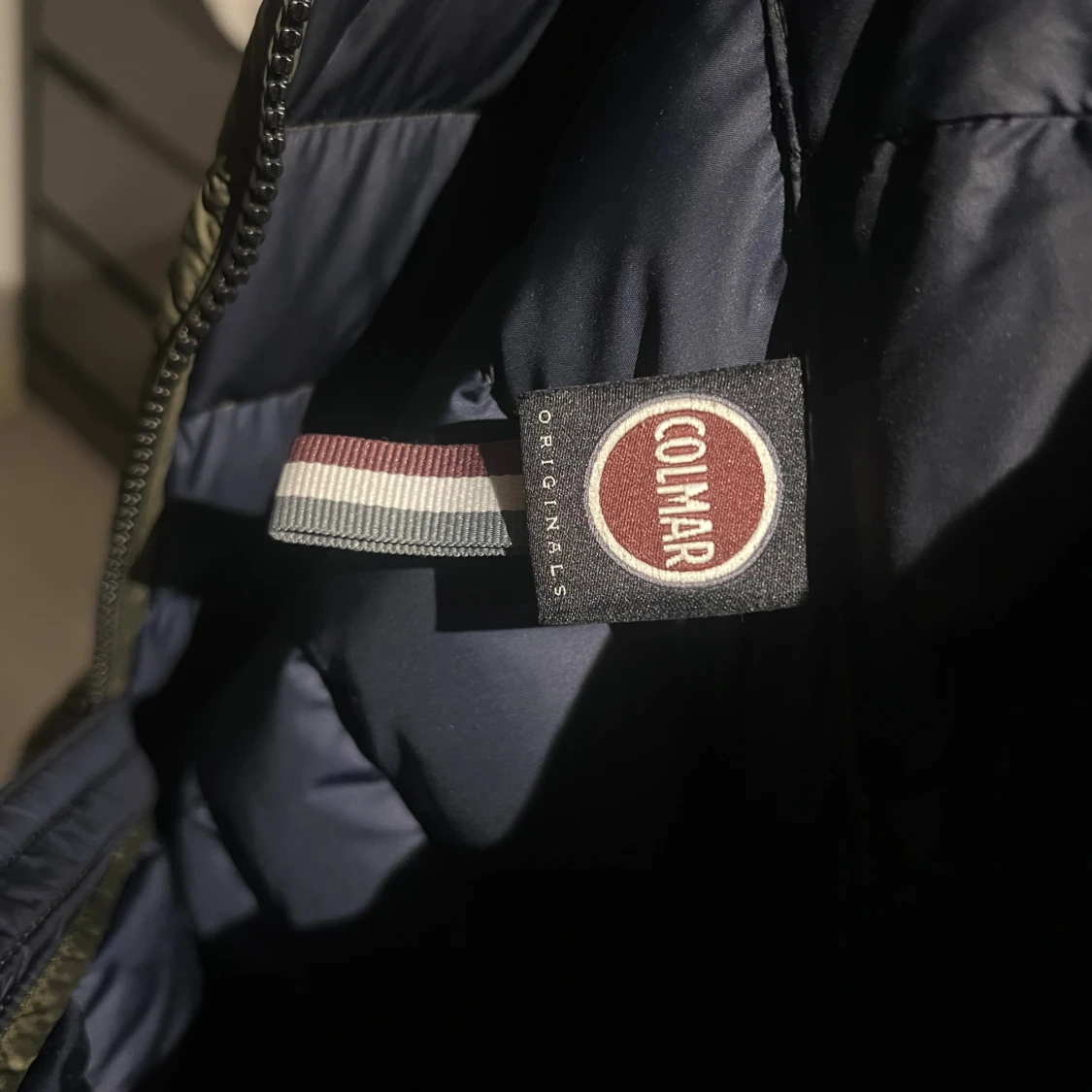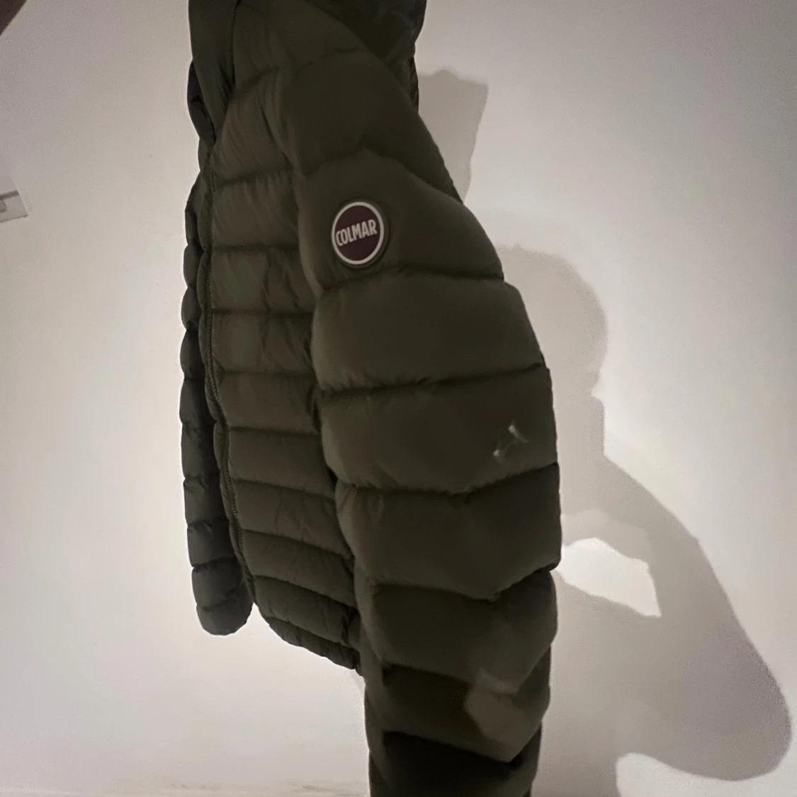Snygg olivgrön dunjacka från Colmar med huva och dragkedja framtill. Jackan har quiltad design, två fickor med dragkedja och en rund Colmar-logga på ärmen. Perfekt för kyliga dagar och riktigt skön att bära. Obs! Köpte jackan för 5000 men pga de pyttesmå hålen på armen så har jag satt ned priset så pass mycket!