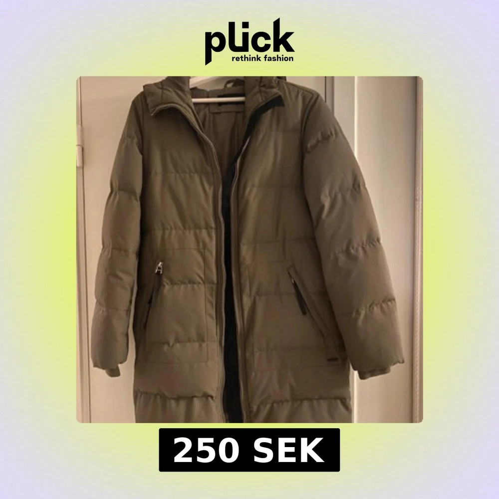 Säljer en olivgrön dunjacka från Vero Moda. Jackan har en lång design med dragkedja framtill och praktiska fickor med dragkedjor. Perfekt för kyliga dagar med sin vadderade stil.