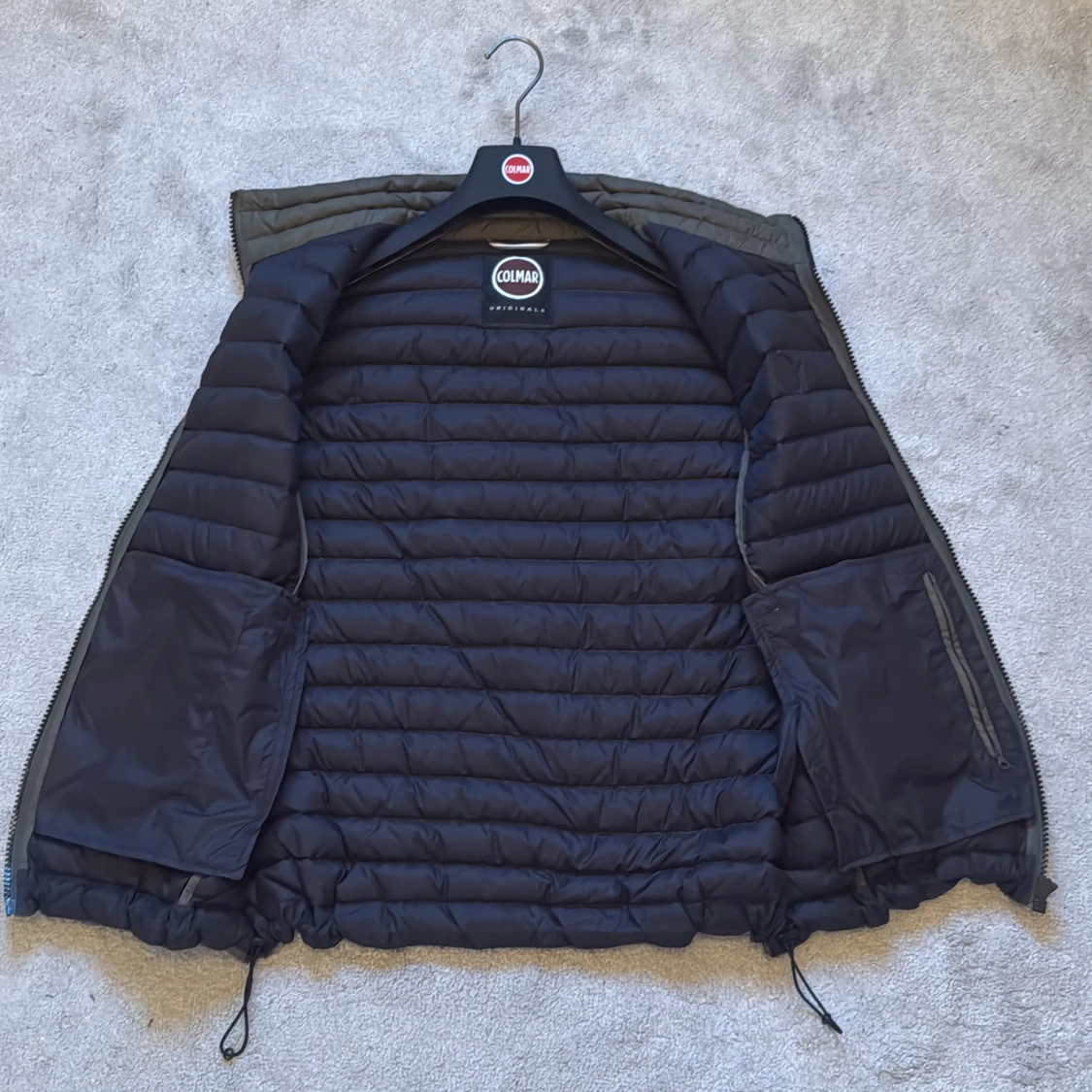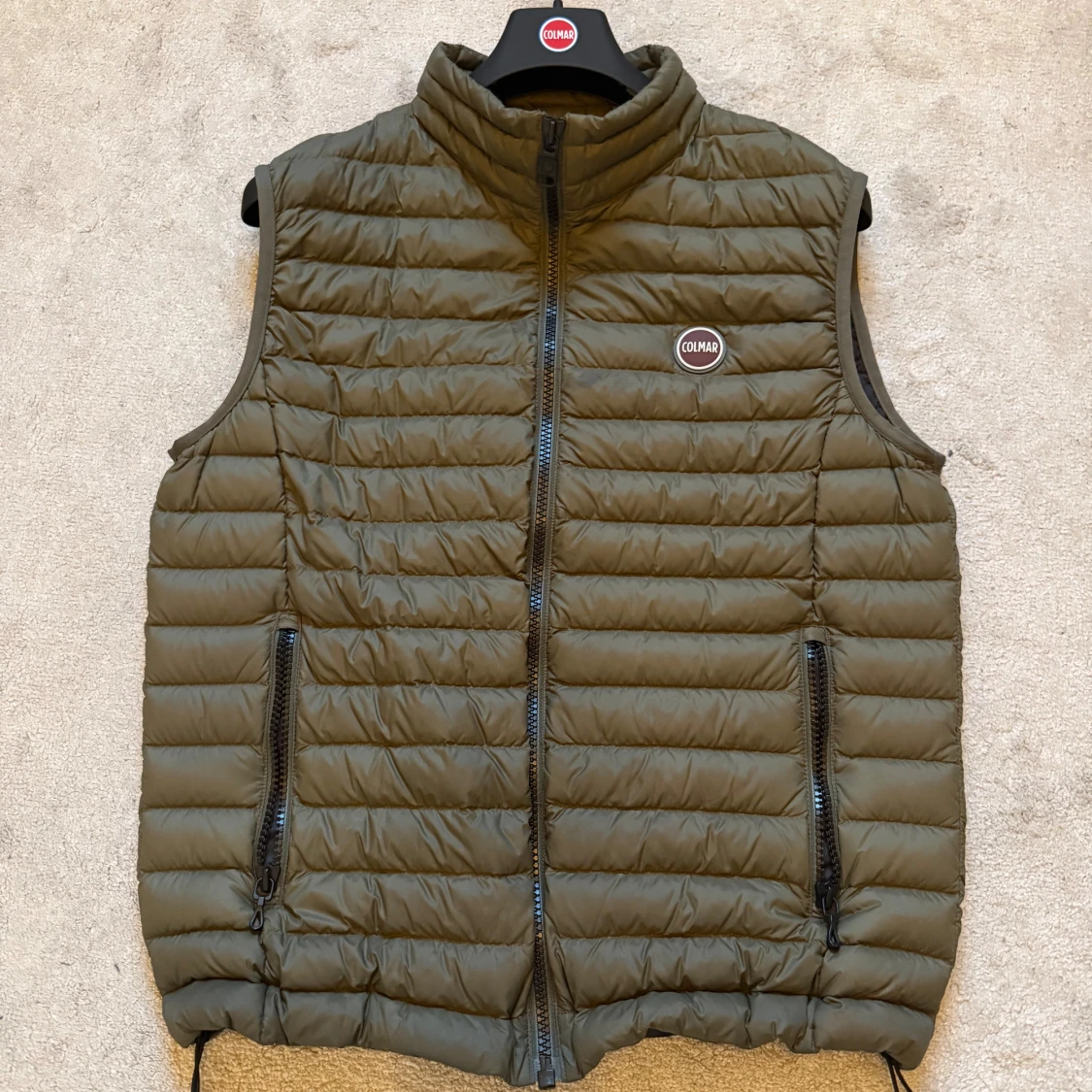 Snygg olivgrön dunväst från Colmar med quiltad design och hög krage. Västen har två dragkedjeförsedda fickor framtill och Colmar-logga på bröstet samt på baksidan längre ned. Perfekt för lager-på-lager och enkel att matcha med hoodies eller tröjor. Har ett lagat hål som man knappast märker. Nypris ligger på ca 2000, pris kan diskuteras.