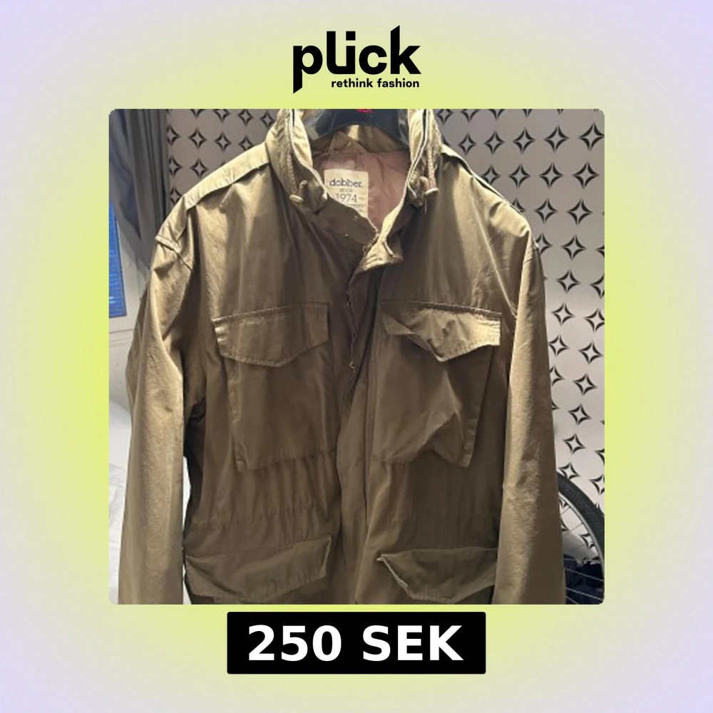 Säljer en olivgrön jacka från Dobber med praktiska fickor och dragkedja. Perfekt för höst och vår. Jackan har en klassisk design med krage och knappar.
