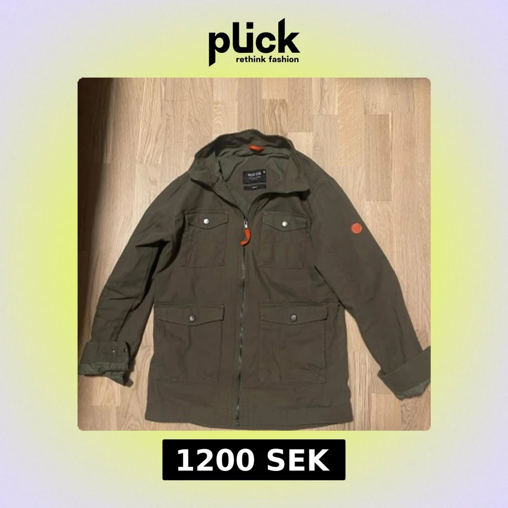 Jag säljer den för ett billigare pris, oanvänd och helt ny. Säljer en olivgrön jacka från Indicode med dragkedja och knappar. Jackan har fyra fickor framtill och en liten orange detalj på ärmen. Perfekt för höst och vår.