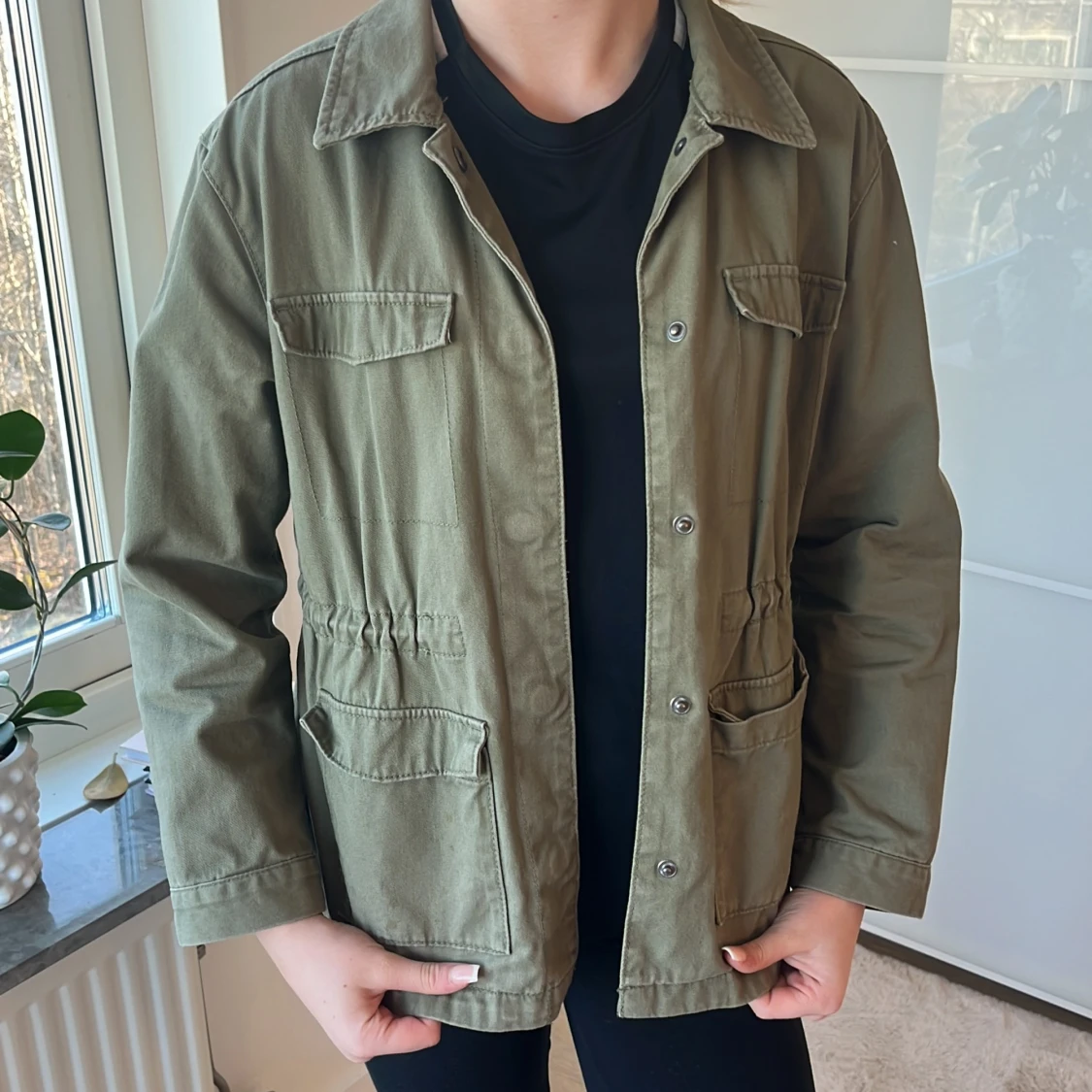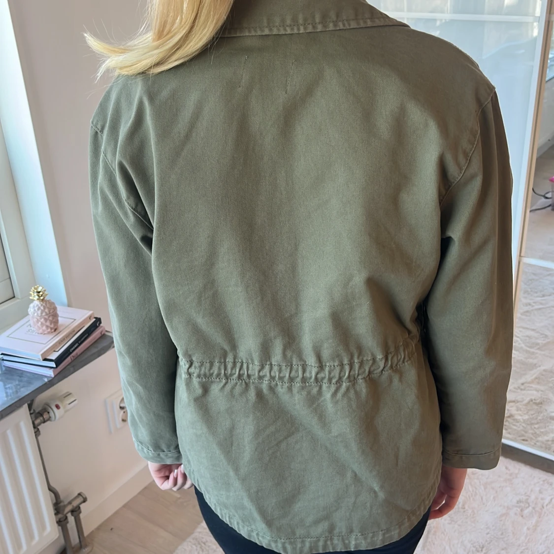 Säljer en mörkgrön jacka från Kappahl med knappar framtill och flera praktiska fickor. Den är i ett mycket bra skick!