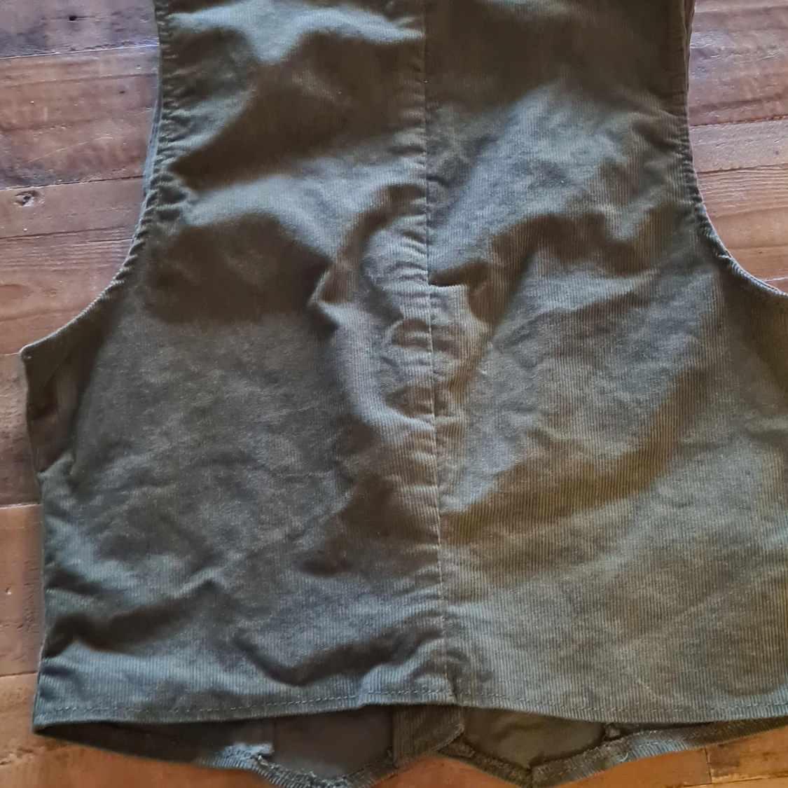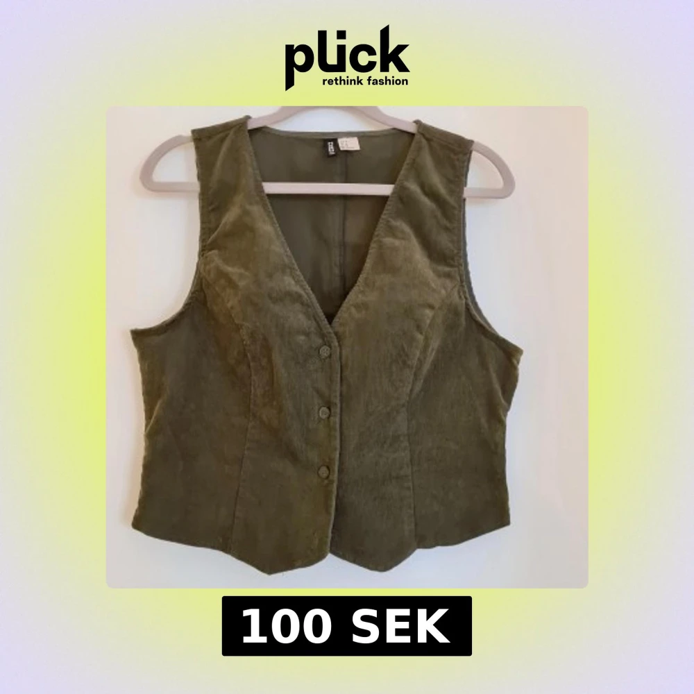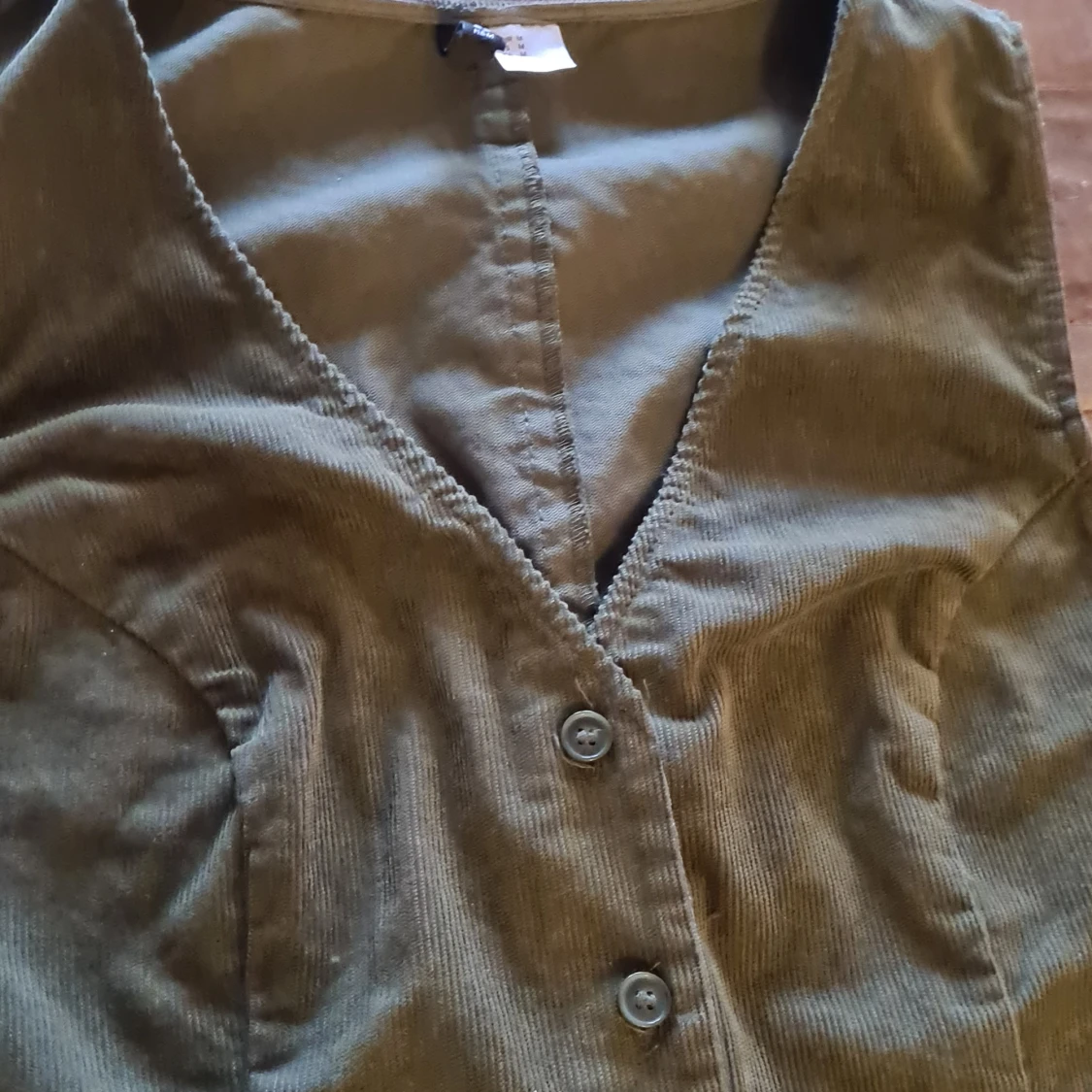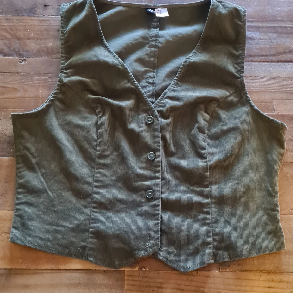 Snygg olivgrön väst i manchester från H&M. Väst med knappar framtill och en v-ringad design. Perfekt för att lägga till en touch av stil till din outfit.