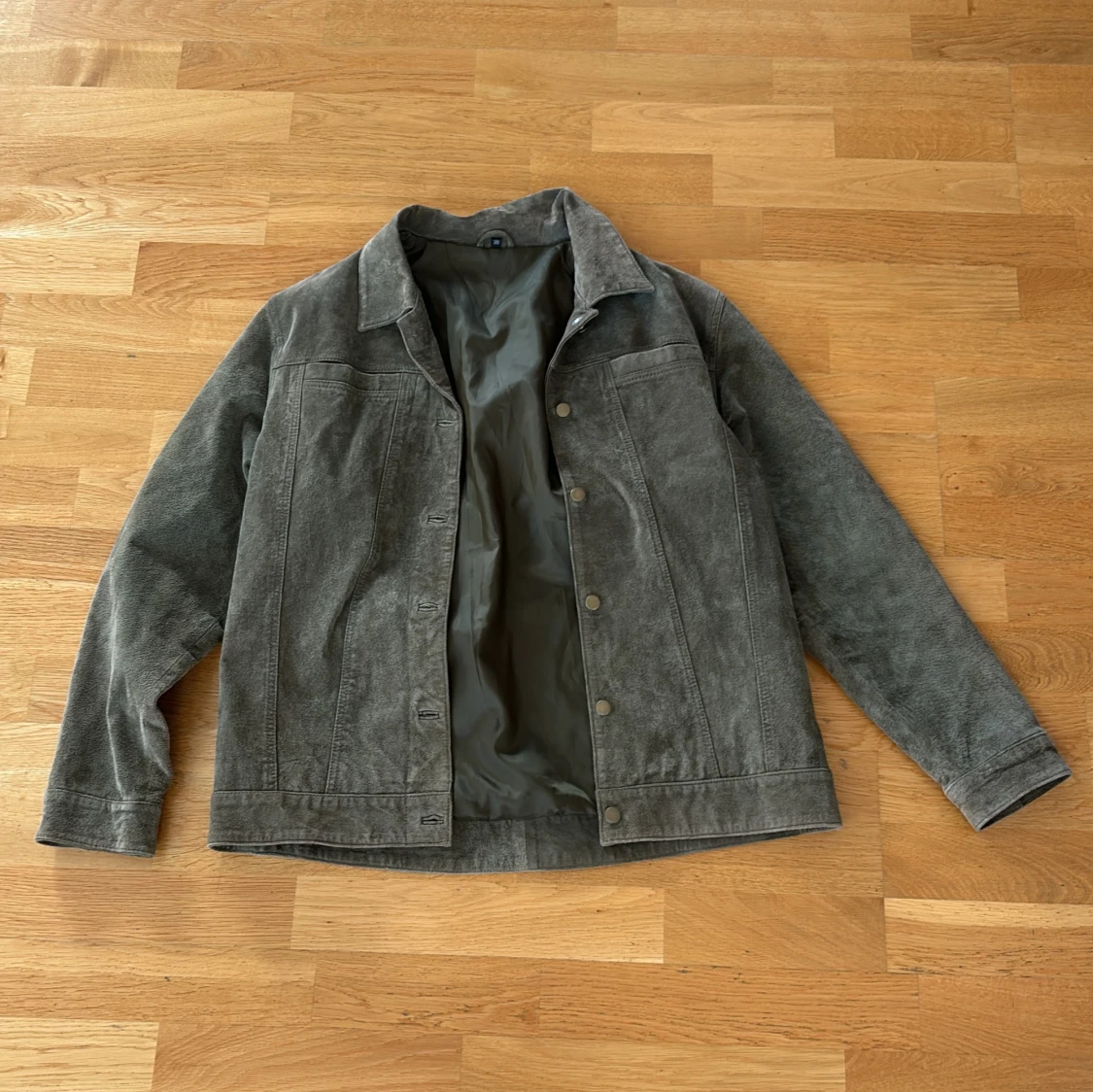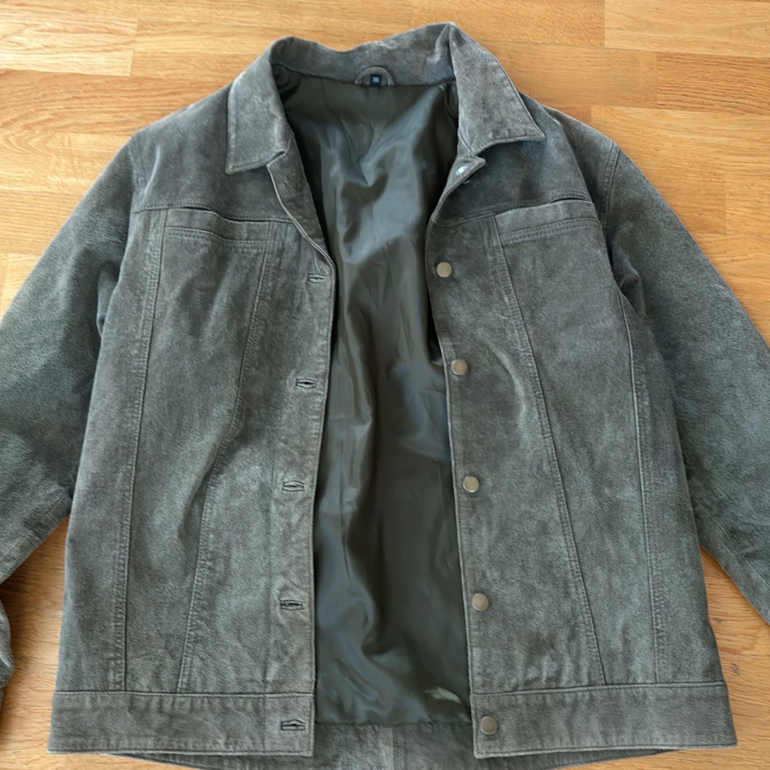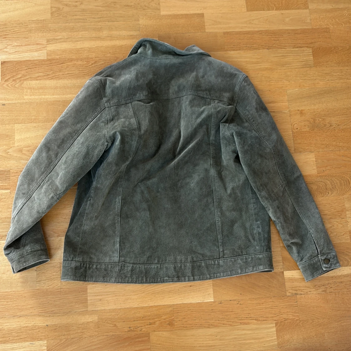 Olivgrön jacka i mocka. Perfekt för våren och sommaren. Kan behöva rengöring men är annars i väldigt bra skick.
