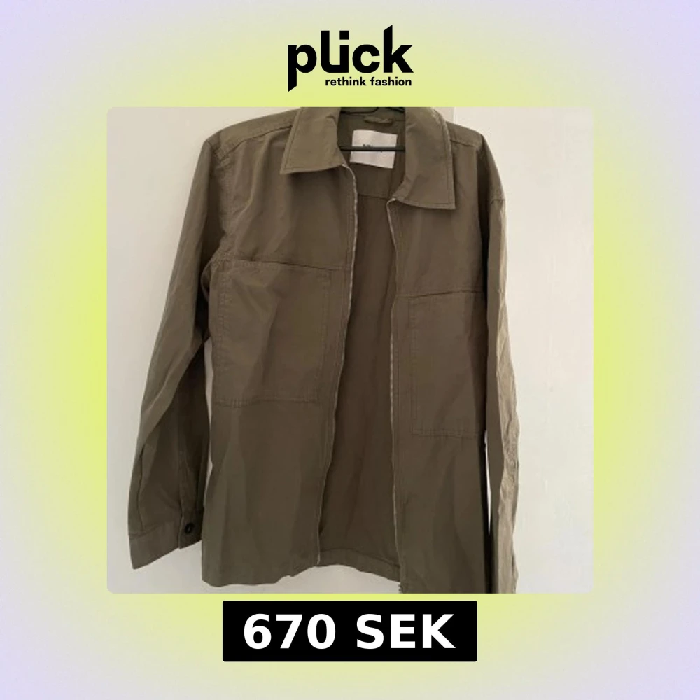 Säljer en stilren olivgrön overshirt från NN.07 i ekologisk bomull. Jackan har raka linjer, två stora bröstfickor, klassisk krage och dragkedja framtill. Perfekt att slänga på över en t-shirt för en clean look.