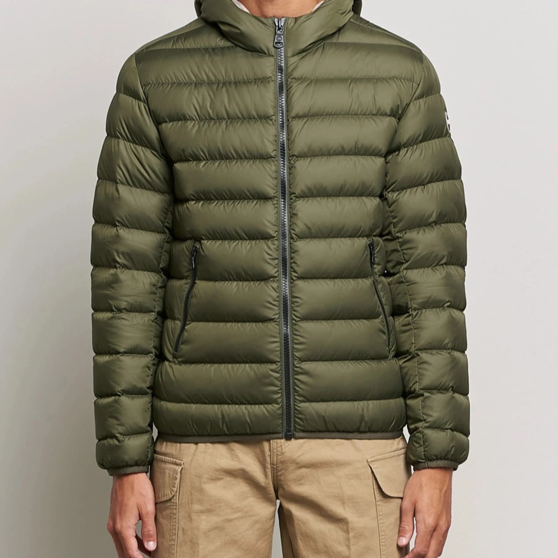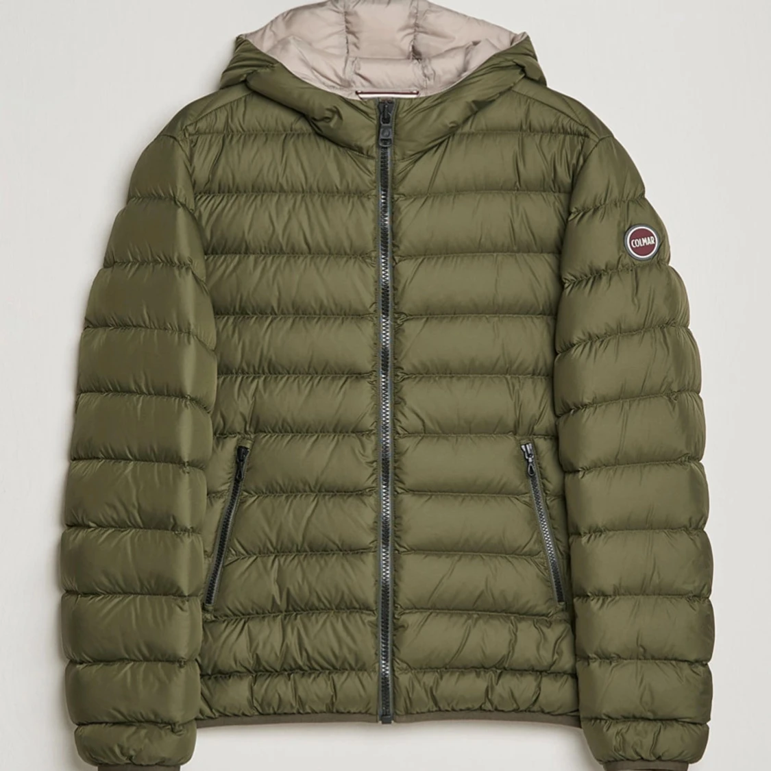 Säljer en olivgrön pufferjacka från Colmar med huva och dragkedja framtill. Jackan har två sidofickor med dragkedja och en diskret logotyp på ärmen. Perfekt för kyliga dagar.