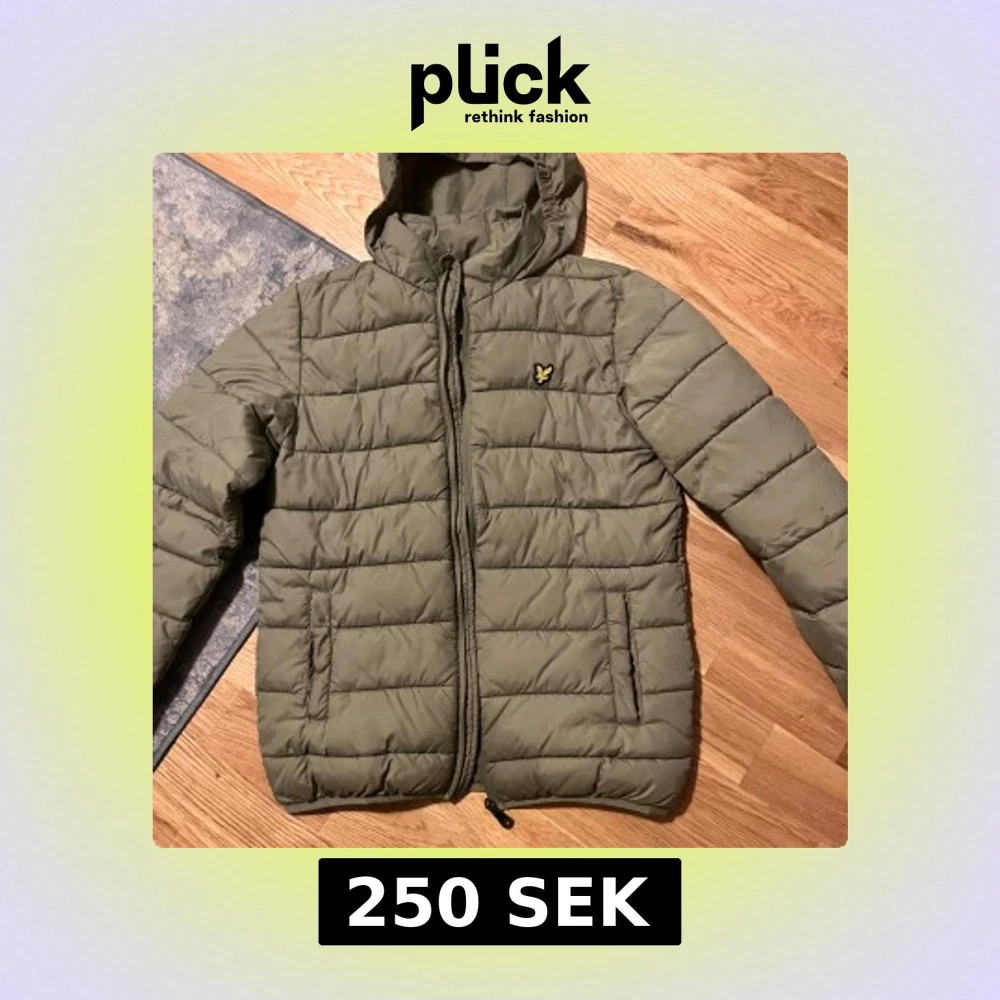 Snygg olivgrön pufferjacka från Lyle & Scott med huva och dragkedja framtill. Jackan har quiltad design, två fickor och den klassiska loggan på bröstet. Perfekt för kyliga dagar och enkel att matcha med det mesta.