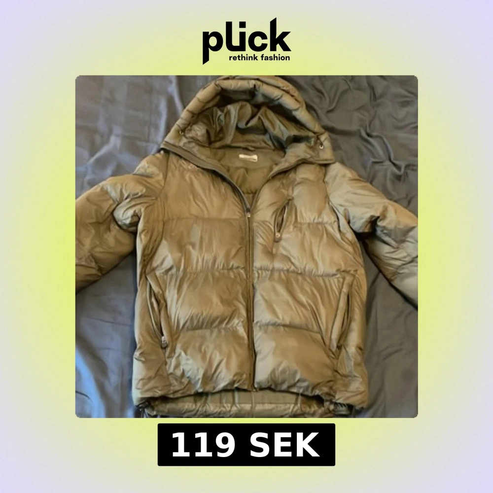 Säljer en olivgrön pufferjacka med huva och dragkedja framtill. Jackan har två sidofickor med dragkedja och en bröstficka med dragkedja. Perfekt för kalla dagar och riktigt skön att bära tack vare det vadderade materialet.