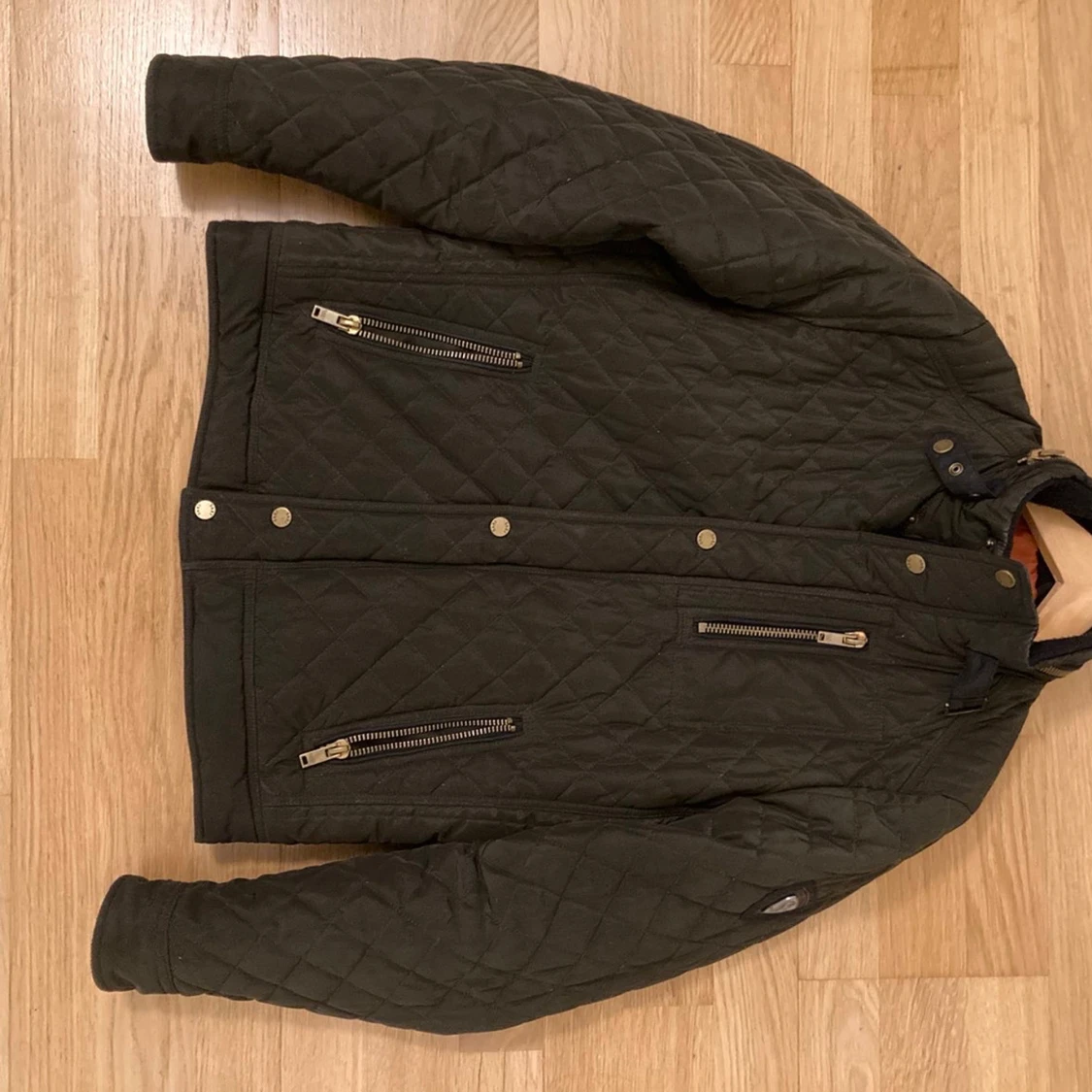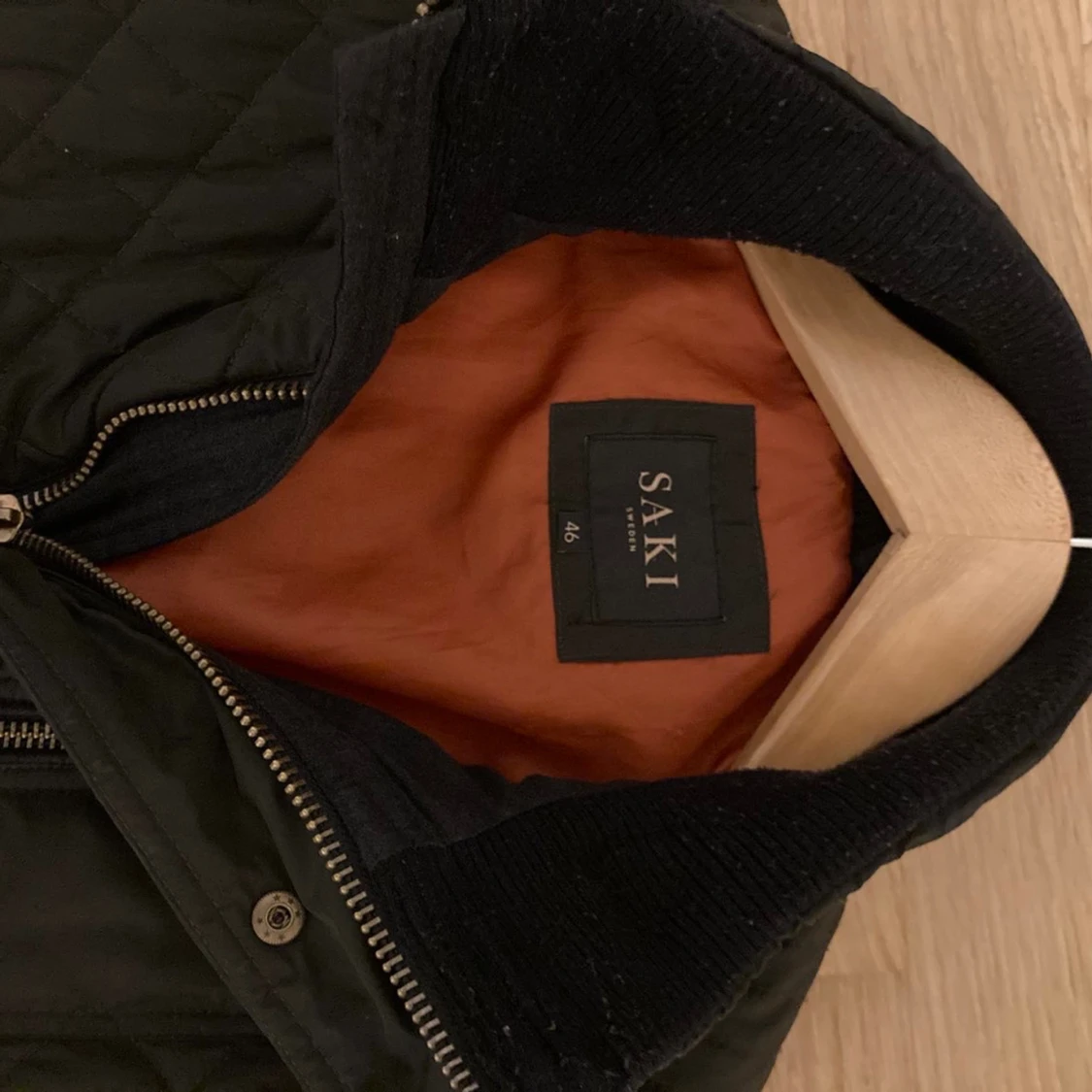 Hej! Jag säljer nu min olivgröna jacka från Saki. Jackan har lång ärm, ståkrage med ribbade detaljer och orangefärgat innerfoder. Perfekt för dig som vill ha en stilren och modern look.