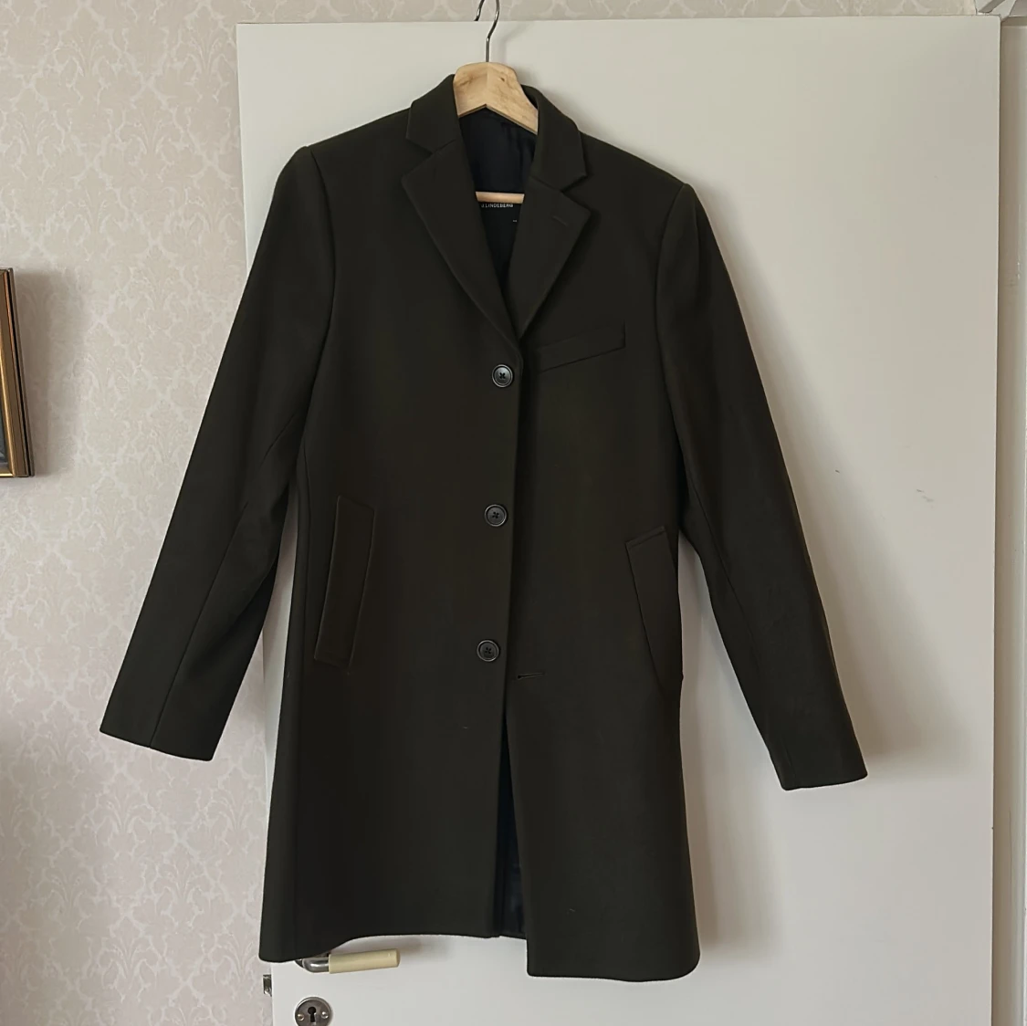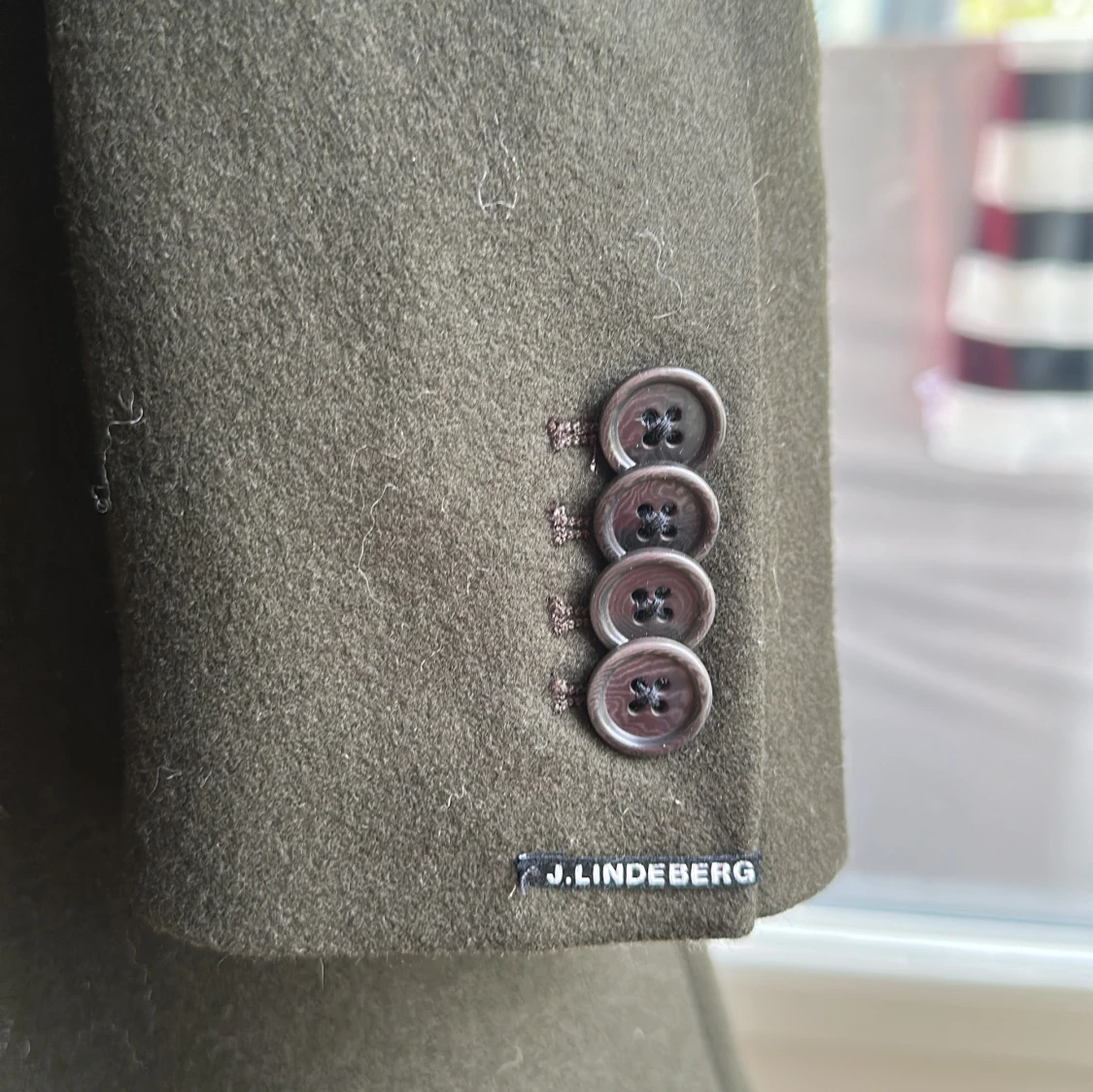 Snygg olivgrön rock från J.Lindeberg med klassisk krage och tre knappar framtill. Jackan har långa ärmar med fyra dekorativa knappar vid ärmsluten och diskreta fickor på sidorna. Perfekt för dig som vill ha en stilren och tidlös look. Slimfit. Användes ej då den var något för liten.