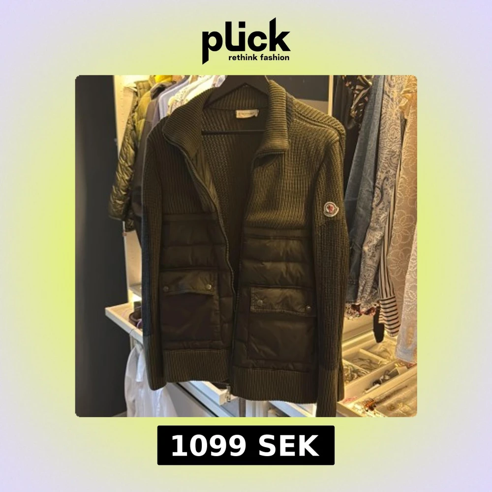 Säljer en olivgrön stickad hybridjacka från Moncler med quiltade partier framtill och två fickor med lock. Jackan har dragkedja, ribbade muddar och Moncler-logga på ärmen. Perfekt för lager-på-lager och snygg till jeans. Modell : Cambales Giubotto