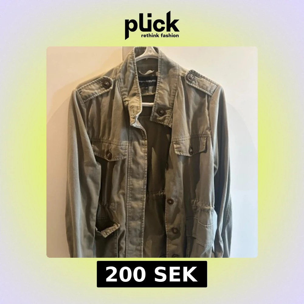 Säljer en olivgrön utilityjacka från KappAhl med flera fickor och dekorativa axelpartier. Jackan har knappar framtill och på fickorna samt lång ärm. Perfekt för lager-på-lager under svalare dagar.