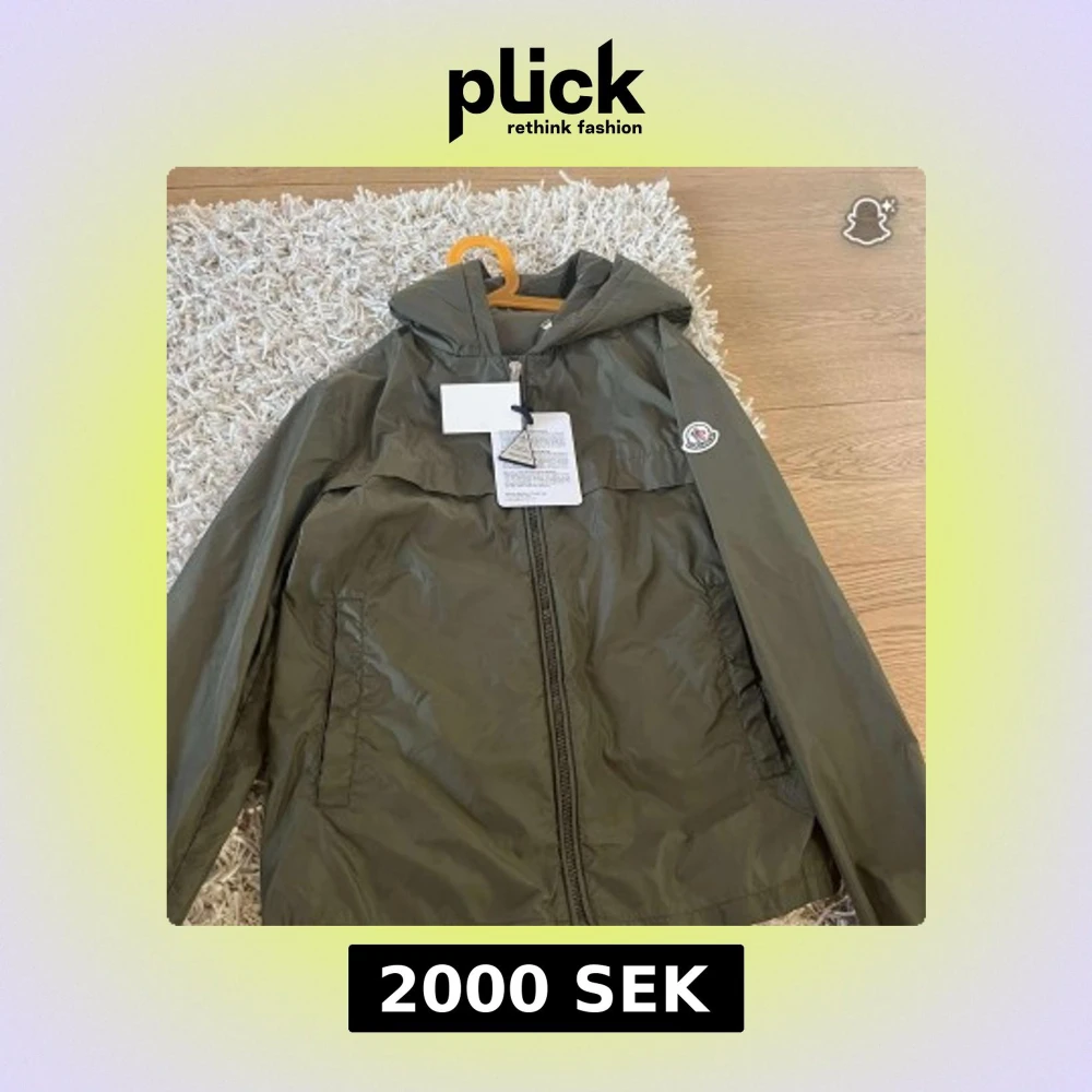 Säljer en olivgrön vindjacka från Moncler med huva och dragkedja framtill. Jackan har två fickor på sidorna och klassisk Moncler-logga på ärmen. Perfekt för blåsiga dagar och enkel att matcha med olika outfits.