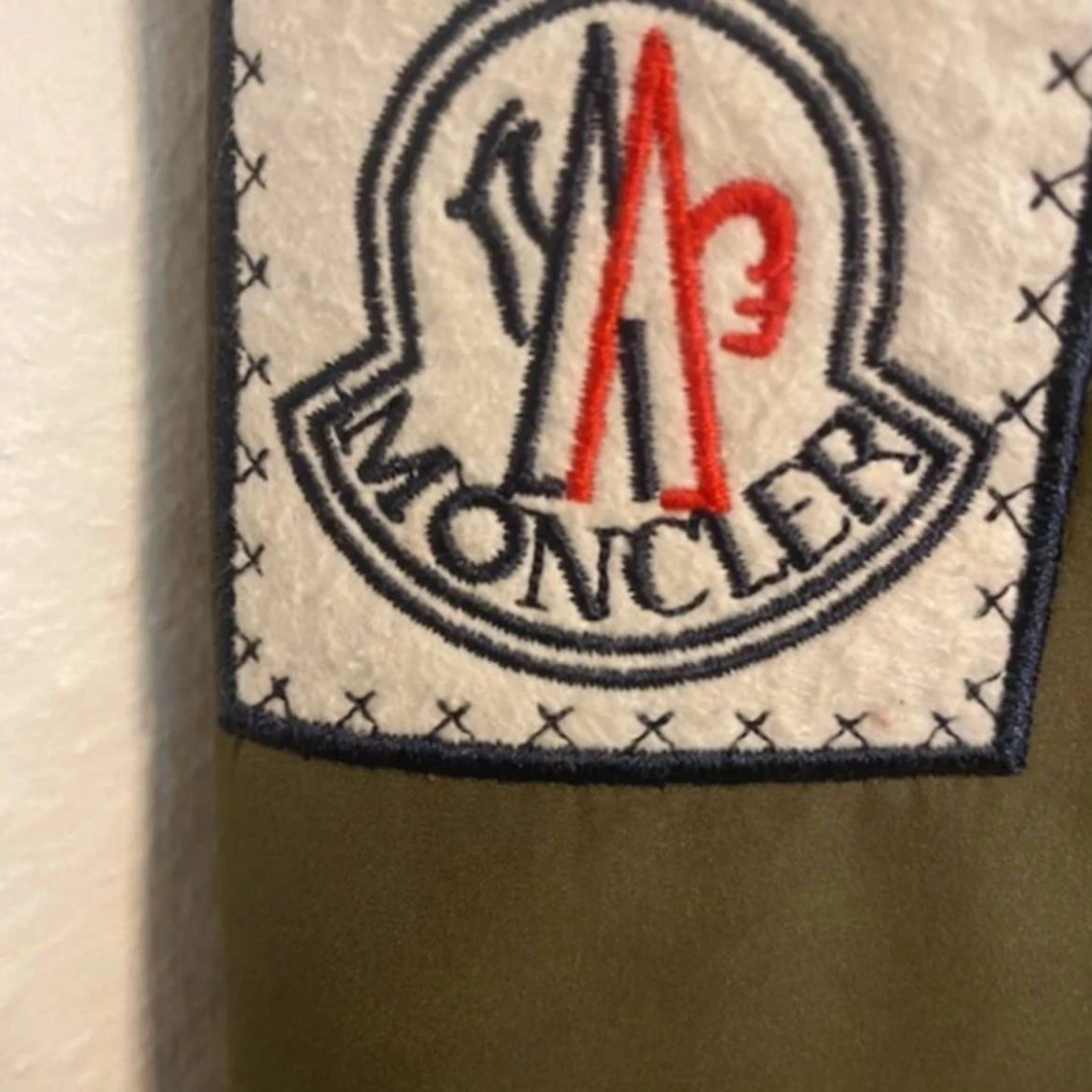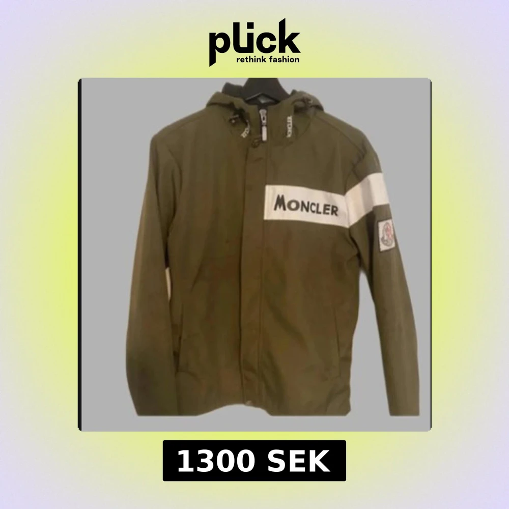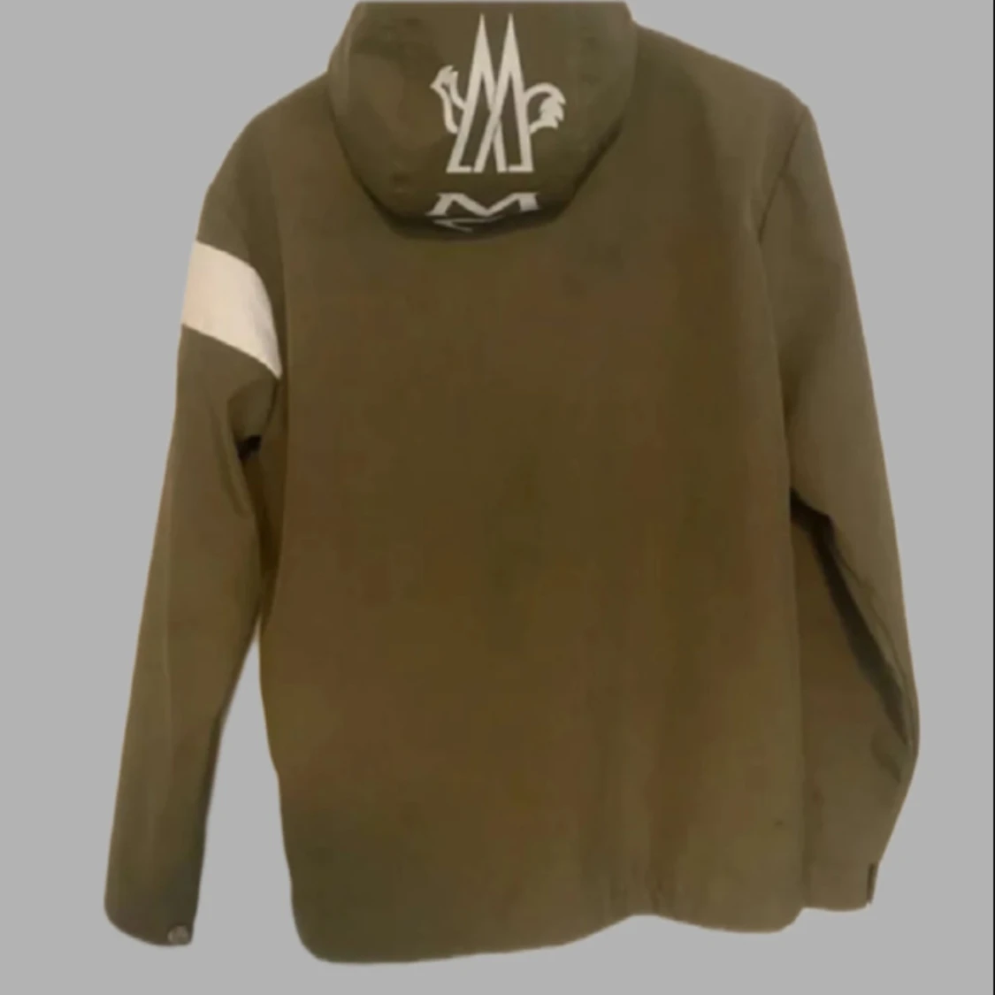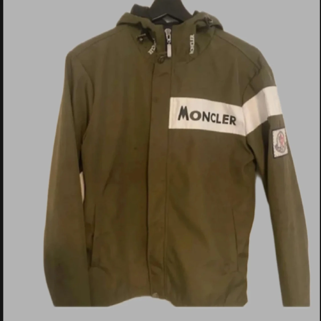 Snygg olivgrön vindjacka från Moncler med vit logga på bröstet och ärmen. Skick 9/10