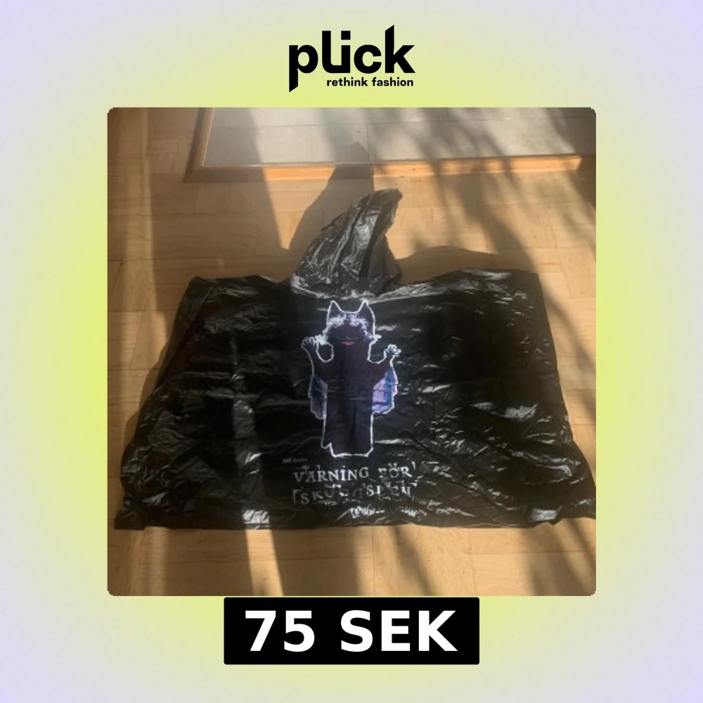 Cool svart regnponcho för barn med huva och tryck av Skuggslem från Sommarskuggan. Perfekt när det regnar och du vill sticka ut med ett unikt motiv. Ponchon är lätt att packa ner i medföljande påse och har ett stort tryck framtill.