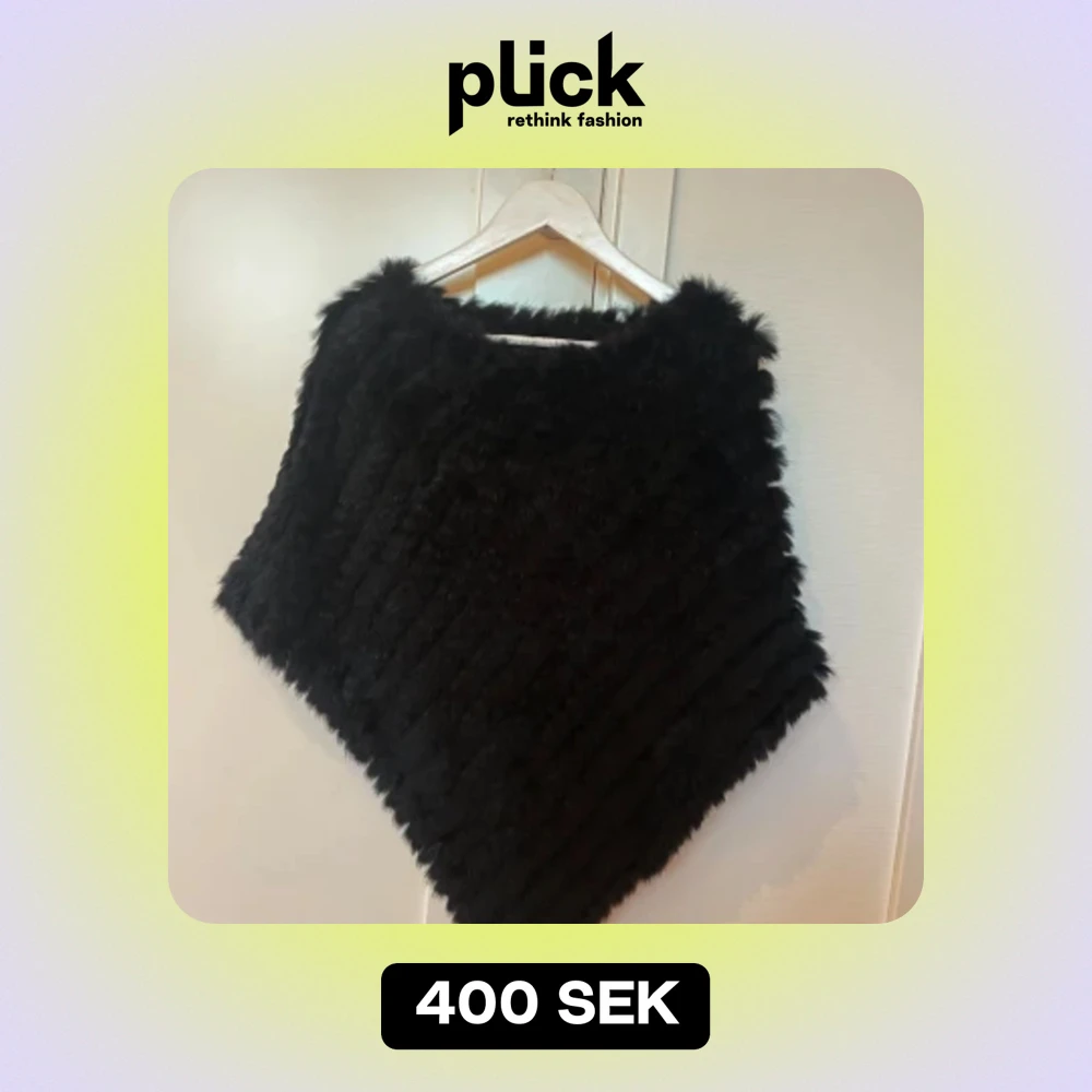 Säljer en supermysig svart poncho från Natures Collection. Den är gjord av 100% akryl och kaninpäls, vilket gör den både varm och stilren. Passar alla årstider, både till vardag och fest! Sparsamt använd.